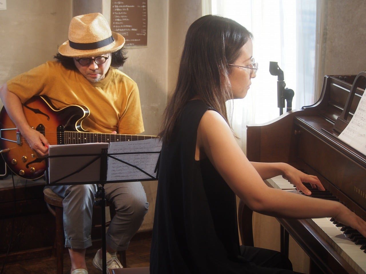 今日は小岩コチまで西山瞳さんのソロピアノを聴きに参上!5月に予定していた瞳さんの新アルバム「Vibrant」のレコ発ライブ。アルバム以外から、Bill Evansトリオの「4.One For Helen」、「9.Gloria‘s Step - Scott LaFaro」、ENRICO PIERANUNZIの「12.Je Ne Sais Quoi」なども演奏されて、Authentic Jazzの神髄に迫る。瞳さんの夢に譜面まで出てきたという井上淑彦さんオリジナル「Retro Spection(回想)」も美しかった。譜面無しで見事に瞳さんが弾き切る。Motion Blueでも<< 2020.8.10.Mon. vo akiko × pf 林 正樹 「spectrum」@Motion Blue YOKOHAMA >>で林正樹さんが井上淑彦さんとセッションした曲「丘」を弾いていた。ピアニストを惹きつける何かがあるのであろう。コチは写真の撮影が出来ないので、ギター市野元彦さんとのDUOライブ@成城学園カフェブールマンのお写真を拝借。近い内にカフェブールマンでも瞳さんのピアノを聴きたい。<<2020 Aug 30th /西山瞳(P)ソロ@小岩コチ>>1st1.Snow Train - 新アルバム「Vibrant」2.Vibrant - 新アルバム「Vibrant」3.Recollection - 新アルバム「Vibrant」4.One For Helen - Bill Evans5.めぐり逢い- 武満徹6.(タイトル未定)2nd 7.To The North - 新アルバム「Vibrant」8.Fly Me To The Moon9.Gloria‘s Step - Scott LaFaro。アルバム「Sunday At The Village Vanguard」(Bill Evans Trio)10.Behind The Door - 新アルバム「Vibrant」11.Retro Spection(回想) - ts井上淑彦さんオリジナル。12.Je Ne Sais Quoi - 瞳さんが好き過ぎるというENRICO PIERANUNZIのオリジナル13.Hand in Hand - 新アルバム「Vibrant」