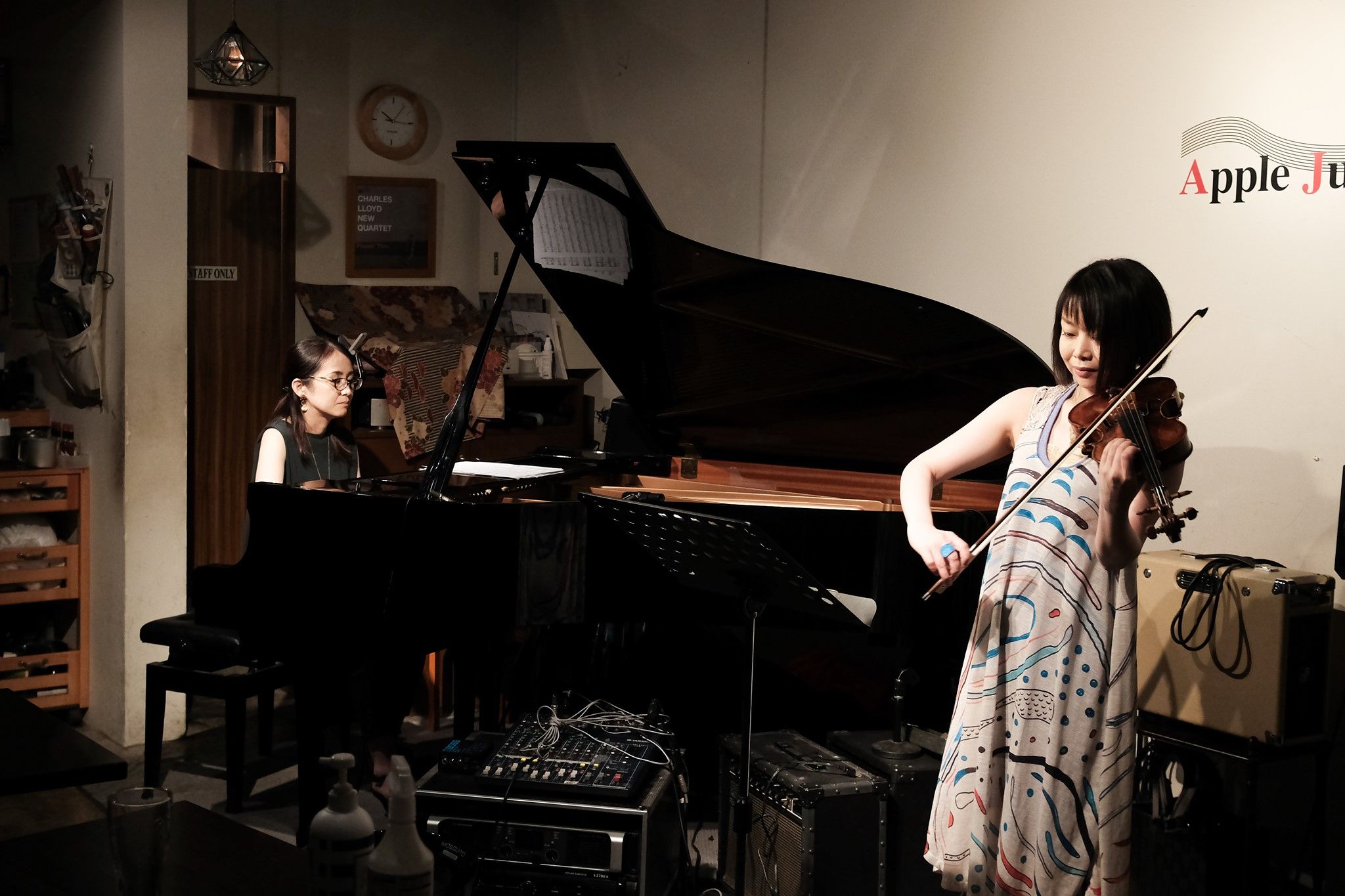 西山瞳さんのピアノを聴きに久々にApple Jumpに参上!セットリストはJAZZスタンダードの4曲「1.There Will Never Be Another You」、「5.Sweet Lorraine」、「9.What Are You Doing The Rest of Your Life - Michel Legrand」、アンコール「11.I‘ll Be Seeing You」、Rock&RollのAerosmith「7.Dream On 」とお二人のオリジナル。「7.Dream On 」は西山さんが配信ライブでソロで演ってシックリと来なかったので持って来られた曲。入山さんにとって「7.Dream On 」は初演だったそうだが、「面白かったので、また演りたい」とのことで次回にも期待。AuthenticなアレンジでSteven Tylerもビックリしそう。「9.What Are You Doing The Rest of Your Life」は「Michel Legrand & Phil Woods 4tet 2001 Montreal 」の名演に拮抗するくらいの素晴らしさ。溜息が出てしまった。また、お二人のライブでお聴きしたい。<<2020 Aug 7th Fri DUO: pf西山瞳 & vln入山ひとみ@池袋Apple Jump>>1st1.There Will Never Be Another You2.Winter Crow - 瞳さんがVlnと演奏することをイメージして作曲3.Softwind - 安ヵ川 大樹さんと瞳さんが六本木のSoftwindで演奏した時に名付けた曲4.Midnight sun - ひとみさん作曲5.Sweet Lorraine2nd 6.Letters2 - 自粛期間にひとみさんが作った曲。お友達に協力して「お手紙」していた時に「降りて来た」。急に終わるのがスリリング。7.Dream On - Aerosmith8.デルタのトンビ/Milvus Migrans of Delta - 出町柳の鴨川のデルタ地帯に居る鳶。虎視眈眈とデルタ地帯でノンビリとお弁当などを食べている人を狙っている。笑9.What Are You Doing The Rest of Your Life - Michel Legrand10.Take The ‘K’ Train - Kは枚方パークの傍を通る京阪電車。瞳さんオリジナル。Enc11.I‘ll Be Seeing You