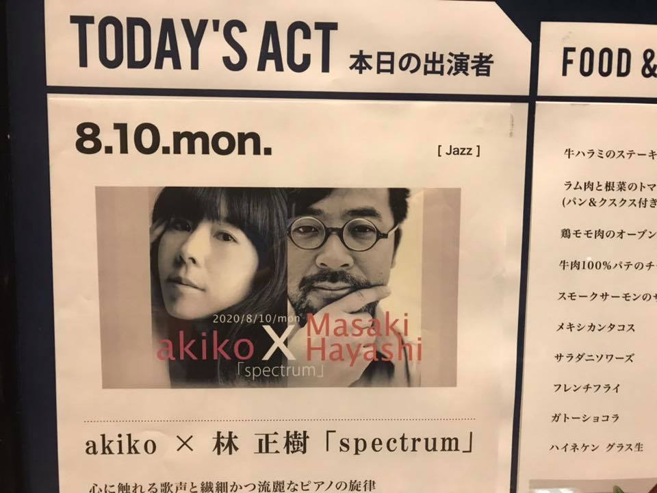 akikoさんと林正樹さんのライブを聴きにMotion Blue YOKOHAMA 参上!Motion Blueへ来たのは久方振りで恐らくメルテンさんのソロライブ << 2019.7.24.wed.岸本 亮 Solo Piano@Motion Blue YOKOHAMA >>以来かと思う。2019年の年末に改装したようで、随分とキレイになった。今日の席はメルテンさんのライブと同じようにピアノの傍の席にしていただいた。akikoさんは今年の2月17日gt小沼ようすけさんとMotion Blueでライブされていて、いわば横浜の本拠地。林さんも3日前にMotion Blueでライブがあって、来月9/22にもSaigenji(vo,g)さんとセッションがあるので林さんにとってもMotion Blueは本拠地。「ホームゲーム」感たっぷりのお二人にvib/per相川瞳さんが加わって、とっても楽しいライブになった。1st Show。まずは、akikoさん、林さんのDUOで「1.I Loves You Porgy - George Gershwin」から。しっとりとした美しさに溢れる。ここで瞳さんがakikoさん、林さんのアルバム「spectrum」でも共演している「2.The Flower of Life」で登場。「4.Teal」は林さんの曲にakikoさんが歌詞を付けた曲。Tealは緑と水色の中間の色彩。「5.Memoria e Fado - Egberto Gismonti」は林さんがakikoさんに是非歌って欲しい曲で選んだ、本邦初公開。2nd Show。まずはインストで林さんにとってはts井上淑彦さんとセッションした思い出の曲である「7.丘」。横浜にゆかりのある井上さんを思ってのセレクトだろうか。何となく井上さんのTenor Saxの音色が聴こえてきたように思った。「9.Summertime」はakikoさんにとっての思い出の曲。林さんのAlfie RoppongiでakikoさんがSit-Inした曲。あまり進んでSit-Inしないakikoさんが林さんのピアノの音色を聴かれて、思わずSit-In。今日の「Summertime」は滅多に聴けないアレンジだったが、Alfieでも同じアレンジだったのだろうか?「10.Bluegray Road」は林さんのオリジナルでソロライブでもよく演奏される曲。その時も林さん歌われると思うが今日もakikoさんのボーカルに呼応して「ボーカリスト林正樹」をお聴きできた。「12.BATUCADA」はこの時期でなかったら、踊りたいようなご機嫌なサンバ。会場は最高潮。アンコールはakikoさんの定番のバラード「13.I Miss You」で泣かせていただく。胸にストンと来る素晴らしいライブ。<< 2020.8.10.Mon. vo akiko × pf 林 正樹 「spectrum」@Motion Blue YOKOHAMA >>guest:相川瞳(vibraphone,percussion)1st1.I Loves You, Porgy-Duo2.The Flower of Life-相川瞳さん登場3.Music Elevation4.Teal-Tealは林さんの曲で緑と水色の中間の色彩。akikoさんの歌詞はTealを含む様々な色の名前から始まる。「色って何でしょう?」5.Memoria e Fado - Egberto Gismonti6.One Note Samba2nd 7.丘-林さんと瞳さんのDuo。林さんにとってはts井上淑彦さんとセッションした思い出の曲。8.Humming - akikoさん登場9.Summertime-林さんのAlfie Roppongiでのライブにakikoさんがこの曲でSit-In。10.Bluegray Road11.Phantasien12.BATUCADAEnc13.I Miss You