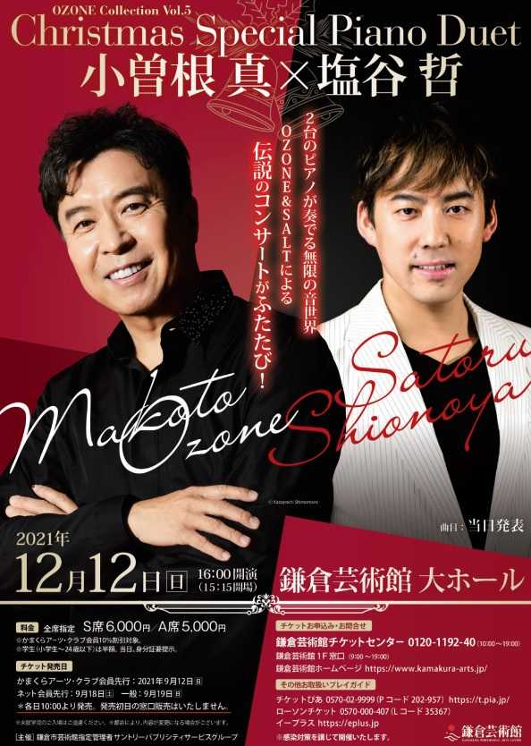 本日は小曽根真さんとSALTさんのDuetを聴きに鎌倉芸術館に参上!小曽根さんのライブのチケットを買うためだけに「かまくらアーツ・クラブ」(鎌倉芸術館)の有料会員になっているが、発売開始と同時に予約したが3列目の席しか買えなかった。何と3列目が最前列だった。小曽根真さんとSALTさんのDuetは実に久方振りで13年振り。小曽根さんとDuet出来る至福感が一杯のSALTさん。12歳となるご子息の聖人(サント)君とDuet&連弾。聖人君の腕前も見事。<< 2021 Dec 12th OZONE Collection Vol.5 Christmas Special Piano Duet 小曽根真×塩谷 哲@鎌倉芸術館>>1st1.Gotta Be Happy - 小曽根真。通常はソロバージョンのアレンジだが、今日はDuet向けアレンジ2.Do You Still Care? - 塩谷 哲3.Valse - 塩谷 哲。2台ピアノのためのワルツ4.salt solo 'Beauty and Brilliance' - 塩谷 哲。小曽根さんがかぶりつきの客席で鑑賞。5.2台ピアノのための「交響的エレジー」- 塩谷 哲。NHK Eテレ「コレナンデ商会」(朝の7時20分~)2nd6.Bienvenidos al Mundo(ようこそ、この世界へ) - 小曽根真7.Ital Park - 小曽根真。Gary Burtonと小曽根さんのアルバム「Time Thread」(2013年)に収録したTango。Italparkはアルゼンチンのテーマパーク。1990年に事故のため、惜しまれつつ閉園。8.聖人セクション ハンガリー舞曲 第1/5番 - Brahms 聖人(サント)君はSALTさんのご子息。1番はSALTさんとDuet。5番はSALTさん/聖人君の連弾と小曽根さんとのセッション。9.makoto ozone solo 'O'berek' - 小曽根真10.No Siesta - 小曽根真Enc11.The Christmas Song - Silent Night12.あこがれのリオデジャネイロ - 塩谷 哲。小曽根さんがSALTさんを知るきっかけになった、「あこがれのリオデジャネイロ」で鮮やかなフィーナーレ。