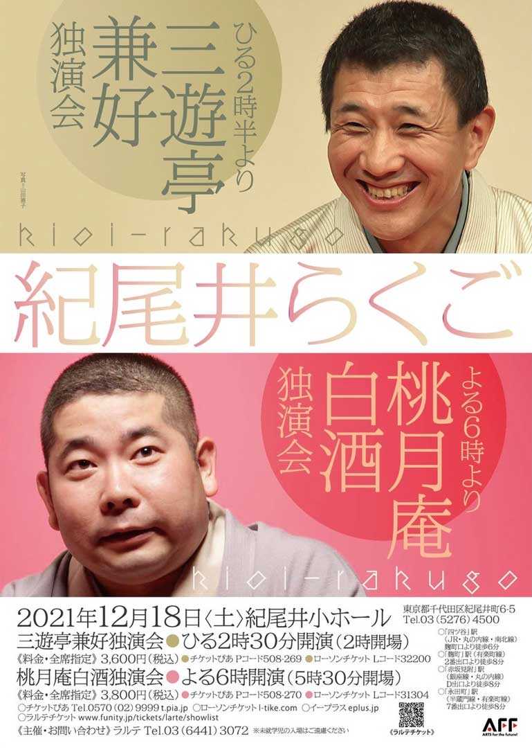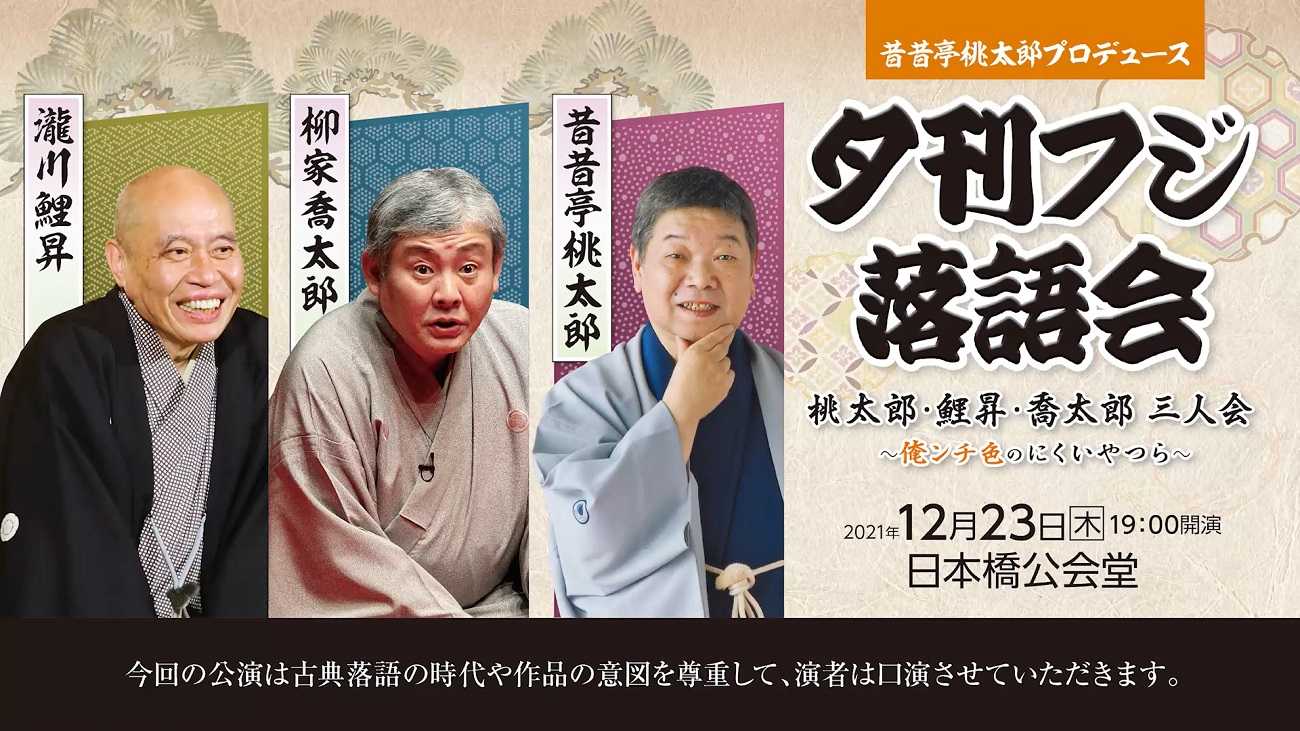ようやく配信で拝聴。2021/12/23@日本橋公会堂 夕刊フジ落語会「桃太郎・鯉昇・喬太郎 三人会」 【夕刊フジ】「やかん」桃太郎「粗忽の釘 ロザリオ版」鯉昇「品川心中 序」喬太郎