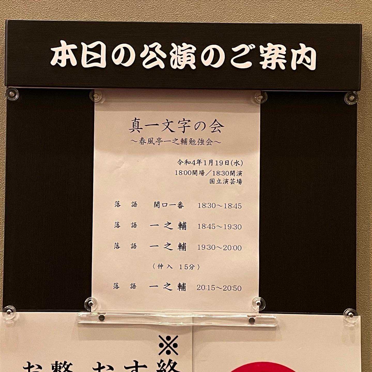 本日は一之輔さんの落語を聴きに国立演芸場に参上!2席目の「うどん屋」は<< 2021年11月15日「2021落語一之輔三昼夜 再び」第1夜@よみうり大手町ホール>>で「ネタおろし」した演目。「ネタおろし」の前に小三治師匠の高座で研究されたようだ。最近の高座では「うどん屋」をよく演るらしく、小三治さんの芸から解き放たれて、熟成されていた。今日のうどんの具材にはコーン🌽が入っている積りだったそうだ。笑🤣 次回の「うどん屋」のうどんの具材には「おかひじき」を入れる構想。ちなみに、1月15日の上野鈴本 二之席 ヒルでやった「うどん屋」のうどんの具材はかまぼこが一切れ、ほうれん草が少し入ったうどんを美味しく頂いたとのこと。お汁がちょっと辛め。「抜け雀」は随分前に志ん朝さんの噺を聴いたが、サゲを「親にかご(駕籠、篭)をかかせた」から一之輔さん流に変化させて、サゲた。真一文字の会 2022/1/19(水) 18:30 開演@国立演芸場 (東京都)一. 開口一番「手紙無筆」春風亭貫いち一.「洒落番頭(庭蟹🦀)」春風亭一之輔一.「うどん屋」一之輔<仲入り>一.「抜け雀」一之輔