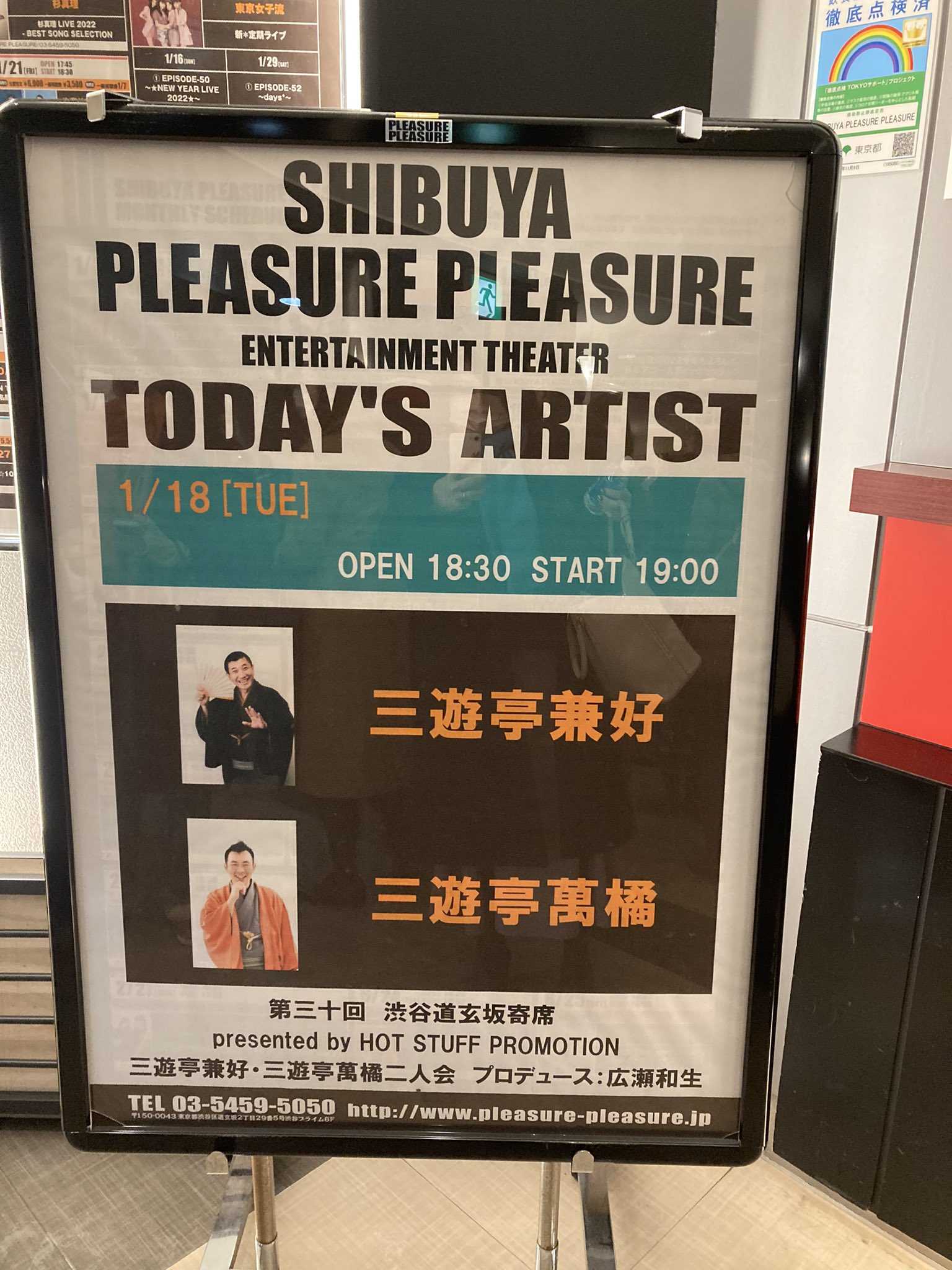 ダブルヘッダー第2試合は兼好さんと萬橘さんの2人会@渋谷 プレジャープレジャー。円楽党の「エース」兼好さんと「ホープ」萬橘さんの2人会。仲が良いようで、萬橘さんを故郷の会津若松まで兼好さんが連れて行くらしい。兼好さんの最新ニュースの毒にマミレタ、マクラ。頭の堅い方なら怒り出すようなことも、「動物のような目」をした兼好さんが言うと許せてしまい、客席は爆笑の渦。さん喬さん、志の輔さん、白鳥さん、三平さんを入れたネタも際どいが楽しい。萬橘さんのマクラも故郷の豊川市と会津若松市の順位を巡る戦い、日暮里のひぐらし亭の立ち退き問題など兼好さんの向こうを張った楽しさ。雪が降った時、水が凍り付く状況を客席が凍り付く様に重ねたリアルなギャグが一番良かった。1/18(火) 第三十回 渋谷道玄坂寄席 三遊亭兼好・三遊亭萬橘二人会@SHIBUYA PLEASURE PLEASUREpresented by HOT STUFF PROMOTIONプロデュース:広瀬和生一. 開口一番「真田小僧」三遊亭しゅりけん一.「天狗👺裁き」三遊亭兼好一.「しの字嫌い」三遊亭萬橘<仲入り>一.「開帳の雪隠」萬橘一.「三枚起請」兼好
