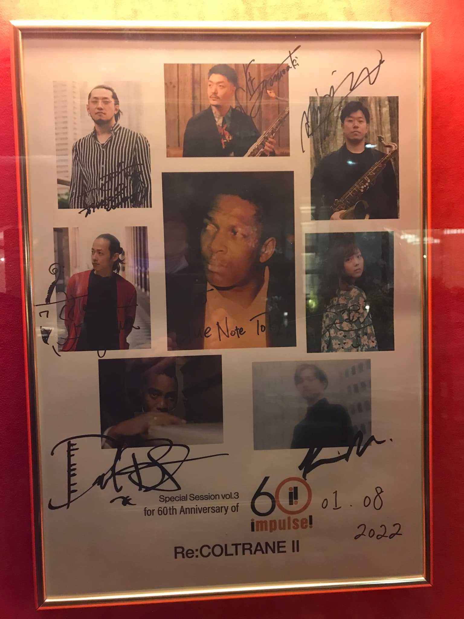 ダブルヘッダー第2試合はBlue Noteに David Bryantさんのピアノ🎹を聴きに参上!前回「2021 Sep 23rd Special Session vol.2 for 60th Anniversary of "impulse!" records, "Re:COLTRANE" featuring Tomoaki Baba, Akihiro Nishiguchi, Akiha Nakashima, Kei Matsumaru, David Bryant, Takashi Sugawa & Shun Ishiwaka with special guest Terumasa Hino」は曽根君のリーダーライブ、<<2021 Sep 23rd MAO SONE Trio with Strings@丸の内Cotton Club>>と重なってしまったので、今日のライブは万難を排して予約。期待通りのアツい、アツいライブ。予約を頑張ったので、無事Davidさんに一番近い席で聴くことが出来た。Davidさんの敬愛するMcCoy Tynerの魂が乗り移った「2.Giant Steps」、「4.Naima」のDavidさんの演奏だった。<< 2022 Jan 8th 2nd Show / Special Session vol.3 for 60th Anniversary of "impulse!" records, "Re:COLTRANE II"@Blue Note Tokyo >>馬場智章 (ts,arrange)西口明宏 (ts)中島朱葉(as)松丸契 (as/ss)David Bryant (pf)須川崇志(b)竹村一哲(ds)1.Blue Train2.Giant Steps 3.A Love Supreme part.1 “Acknowledgment”承認 4.Naima5.A Love Supreme part.2 “Resolution”決意Enc6.Moment's Notice