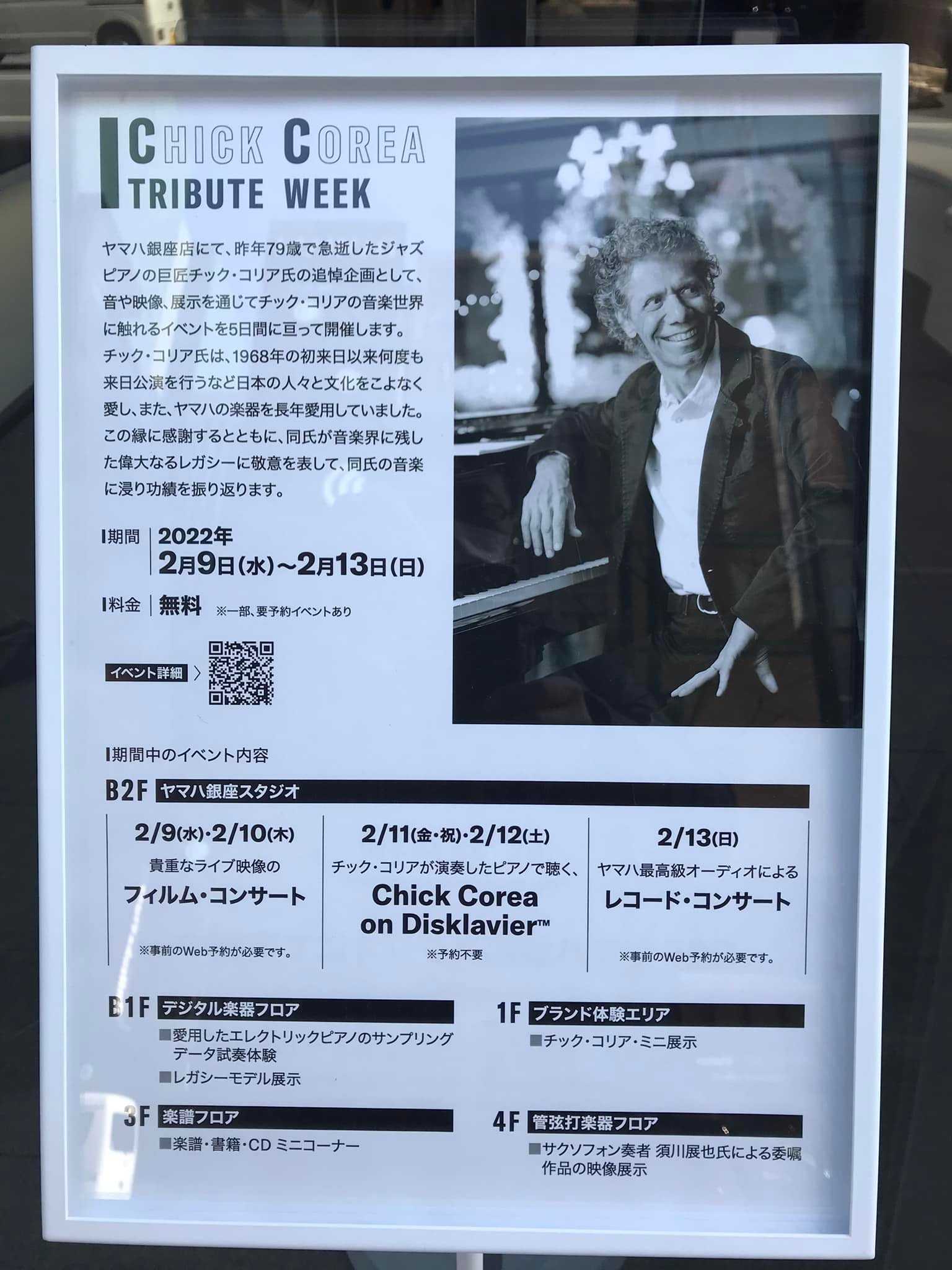 ヤマハでTribute To Chick Coreaのフィルムコンサート。全く知らなかったがJAZZに大変詳しい方から、「チック・コリア・トリビュート・ウィーク」を教えていただいて早速予約。2019年の東京JAZZでChick Corea Akoustic Band、Chick Corea Elektric Bandを聴くことが出来たので、その時の記憶もあってよりリアルに感じた。Chickさんのプレイは勿論キレキレだが、John Patitucciのwb/eb共に凄かった。帰りにElektric Bandの方を観られた方が「なんじゃ、あのベースは。凄すぎる」と感想を言っていたが、Akoustic Bandも猛烈だった。「7. View from the Outside」ではDave Wecklがメインでない楽器でJohn Patitucciとバトルを魅せる。ここも見どころの一つ。Valentineのシーズンだからか、不二家のペコちゃんが三越にいたのでパチリ。全く知らなかったので、不思議な邂逅。チック・コリア、没後1年 追悼企画「チック・コリア・トリビュート・ウィーク」2月9日~13日@ヤマハ銀座店■フィルム・コンサート①Chick Corea Akoustic Band - Live at Munich Summer Piano Festival (1989)Chick Corea - piano John Patitucci - contrabassDave Weckl - drums1. Chasin’ The Trane2. How Deep Is The Ocean3. On Green Dolphin Street4. Sophisticated Lady5. Morning Sprite6. Three Quartets - No. 37. Three Quartets - No. 48. Spain②Chick Corea Elektric Band - Live at the Munich Philharmonie (1987)Chick Corea - key/ rhodesJohn Patitucci - electric bassDave Weckl - drumsFrank Gambale - guitarEric Marienthal - sax1. Overture2. Time Track3. Starlight4. Rumble5. Dragon6. Light Years7. View from the Outside