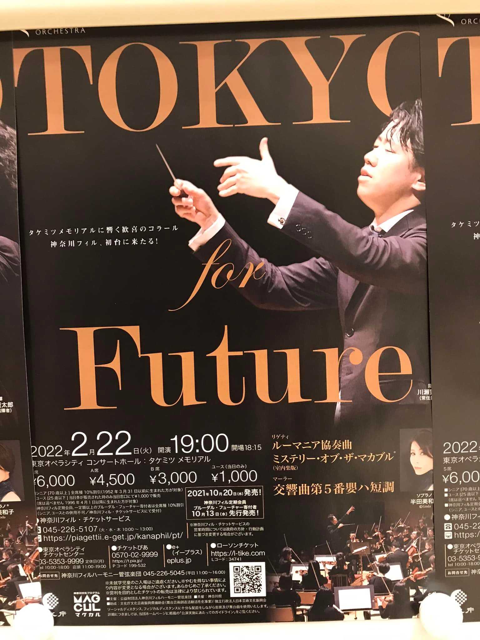 今日はマーラーの交響曲第5番を聴きに東京Opera Cityホールに参上!マーラーの名前しか知らなかったが、交響曲第5番は管と弦の迫力がスゴイ。対照的にharpの繊細な音がホールに響いて素敵。ハープと弦楽器による第4楽章アダージェットは、ルキノ・ヴィスコンティ監督による1971年の映画『ベニスに死す』(トーマス・マン原作)で使われ、ブームの火付け役を果たしただけでなく、マーラーの音楽の代名詞的存在。今日のコンサートもここまでの力強い演奏が、第4楽章アダージェットで一気に静寂に転換。切ない美しさが、タケミツメモリアルホールを包む。2月22日 神奈川フィルハーモニー管弦楽団 東京公演 for Future@東京オペラシティ コンサートホール[出演]川瀬賢太郎(Cond)、半田美和子(ソプラノ)、神奈川フィルハーモニー管弦楽団[曲目]・リゲティ:ルーマニア協奏曲/ミステリー・オブ・ザ・マカブル(室内楽版)・マーラー:交響曲第5番 嬰ハ短調