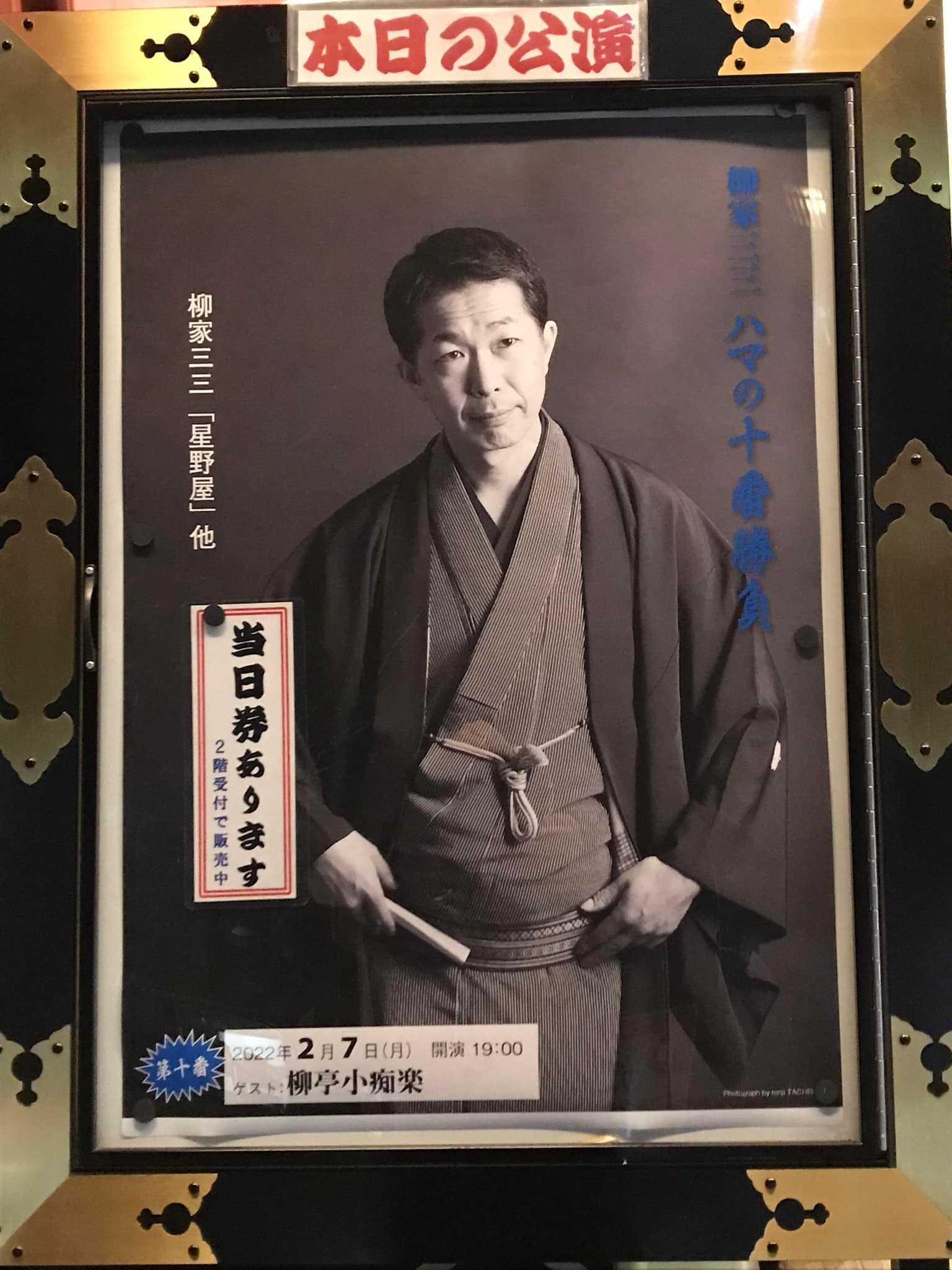 本日は柳家三三さんの落語を聴きに横浜にぎわい座に参上!今日は活きの良い小痴楽さんがゲスト。小三治師匠、歌丸師匠、三三さんと小痴楽さんの九州行脚旅の話が秀逸。小痴楽さんが小三治師匠から言われた「柳家でなくて柳亭で良かったね」はキッと迫力あった筈。その3人の付き人で寝坊する小痴楽さんも小痴楽さんならでは。「人間国宝はおっかない」はリアル。笑<< 2022年2月7日「柳家三三 ハマの十番勝負」@横浜にぎわい座>>一. 開口一番「たらちね」古今亭菊一一.「笠碁」柳家三三一.「崇徳院」柳亭小痴楽<仲入り>一.「星野屋」三三