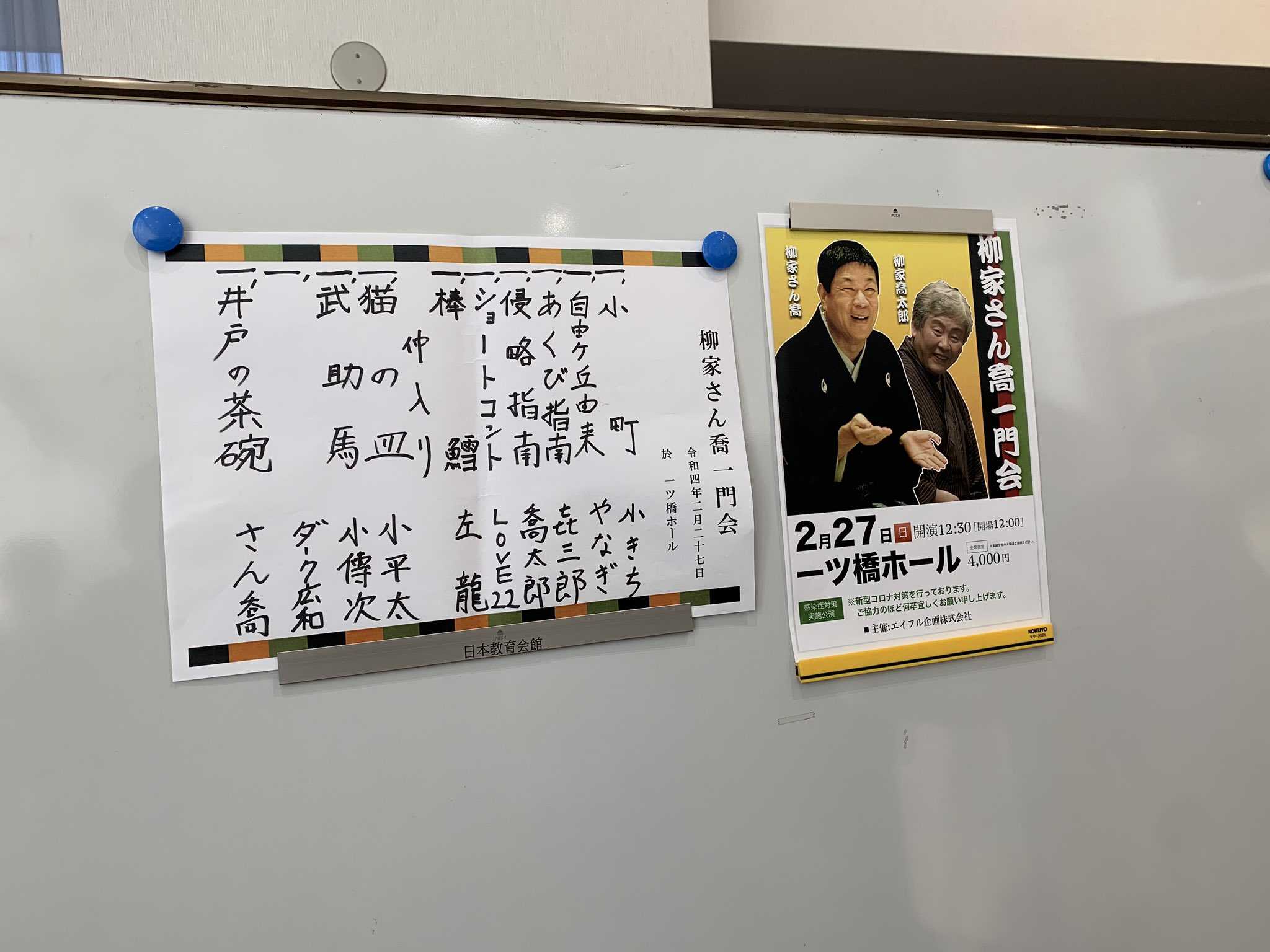 本日の昼の部は、さん喬一門会。左龍さんのマクラで喬太郎さんがさん喬さんの井戸の茶碗について絡んだ話。其れを受けてか、さん喬さんのネタは井戸の茶碗!2022/2/27(日)12:30 開演 柳家さん喬一門会 昼の部@一ツ橋ホール小町 小きち自由ヶ丘由来 やなぎあくび指南 㐂三郎侵略指南 喬太郎ショートコント LOVE22(喬志郎&小志ん)棒鱈 左龍仲入り猫の皿 小平太武助馬 小傳次奇術 ダーク広和井戸の茶碗 さん喬