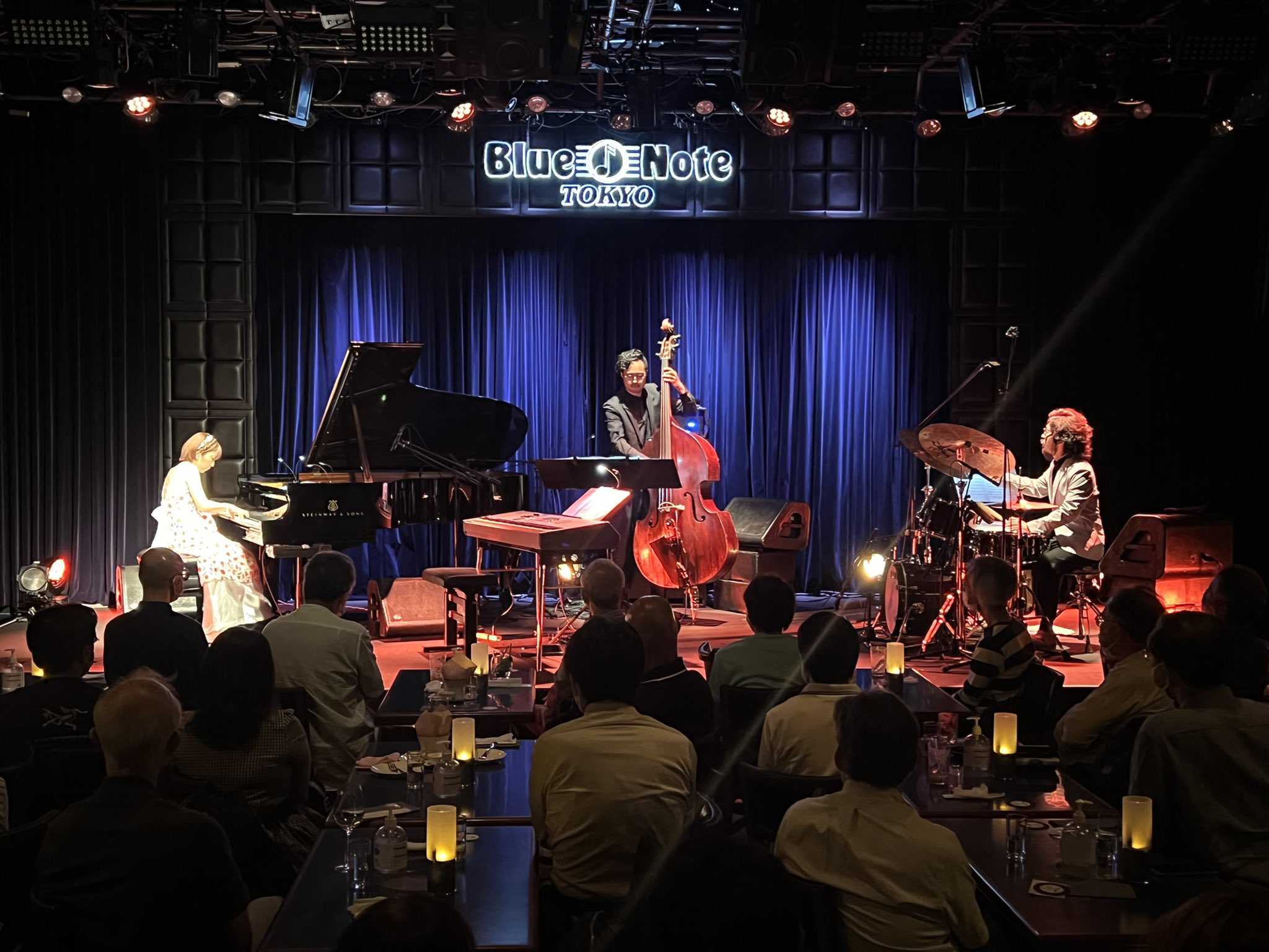 ダブルヘッダー第2試合。山中千尋さんのトリオを聴きにBLUE NOTE TOKYOに参上!<< 2022年5月19日 1st&2nd Show/ 山中千尋 Trio@Billboard Live TOKYO>>以来の千尋さんのトリオ。この時も1 setで9曲でタップリお聴きできたが、今日は何と12曲。ほぼ90分、ずっと演奏の連続。圧巻。余興の「枯葉」では千尋さんがベース、山本君がピアノ。ナカナカ聴き応えのあるピアノ。千尋さんが一音一音、丁寧に弾くベースも良かった。<< 2022年7月3日 2nd Show/ 山中千尋 Trio@Blue Note Tokyo>>山中千尋 (Piano)山本裕之 (Bass)桃井裕範 (Drums)1.Calling You (From Film "Bağdad Cafe")2.I'm Gonna Go Fishin' - Duke Ellington3.Clue - 千尋さんのオリジナル曲をepで。海外でも人気のある曲。2016年7月13日リリース『ギルティ・プレジャー』より。4.Take Five - Paul Desmond5.Ojos De Rojo 赤い家 - Cedar Walton6.So Tender - Keith Jarrett7.ベートーヴェン - ピアノソナタ8番「悲愴」第二楽章 - Beethoven - Pathetique Piano Sonata No.8 Op.13-2 /epで8.Turn Out the Stars - Bill Evans9.What Is This Thing Called Love - Cole Porter10.Spain/ep11.余興で「枯葉」- 千尋さんがベース、山本君がピアノ。ナカナカ聴き応えのあるピアノ。12.八木節