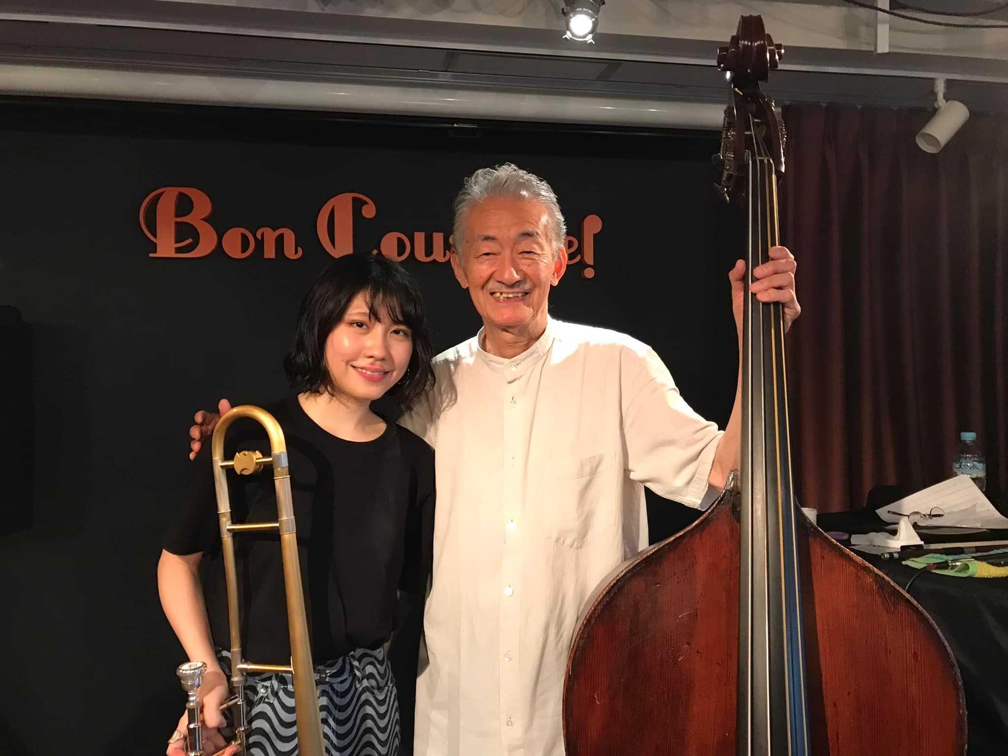 トリプルヘッダーの第2試合は鈴木良雄さんと治田七海さんのDuo。私の“大好物”のJazzスタンダードOnlyという実に嬉しいセットリスト😃😆<<2022 Jul 27th DUO:b鈴木良雄&tb治田七海@壱岐坂BONCOURAGE>>1st1.Line for Lyons - Gerry Mulligan2.Lament - J.J.Johnson3.A Flower is Lovesome Thing - Billy Strayhorn。大西順子さんのアルバムではJose Jamesがセクシーなボーカルでこの切ない曲を歌っている。4.Billie‘s Bounce − Charlie Parker2nd 5.Alone Together – Arthur Schwartz。Hank Jonesの愛奏曲。6.Midnight Mood - Joe Zawinul7.In A Sentimental Mood – Duke Ellington8.Moose the Mooche − Charlie Parker。Parkerへのドラッグの売人、Emry “Moose the Mooche” Byrdから由来。Enc9.I Can’t Get Started − Vernon Duke