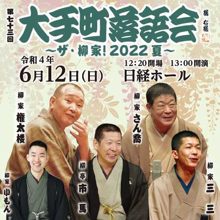 余裕が無くて、今頃配信で拝見。2022年6月12日(日)「第七十三回大手町落語会」~ザ・柳家!2022夏~@日経ホール