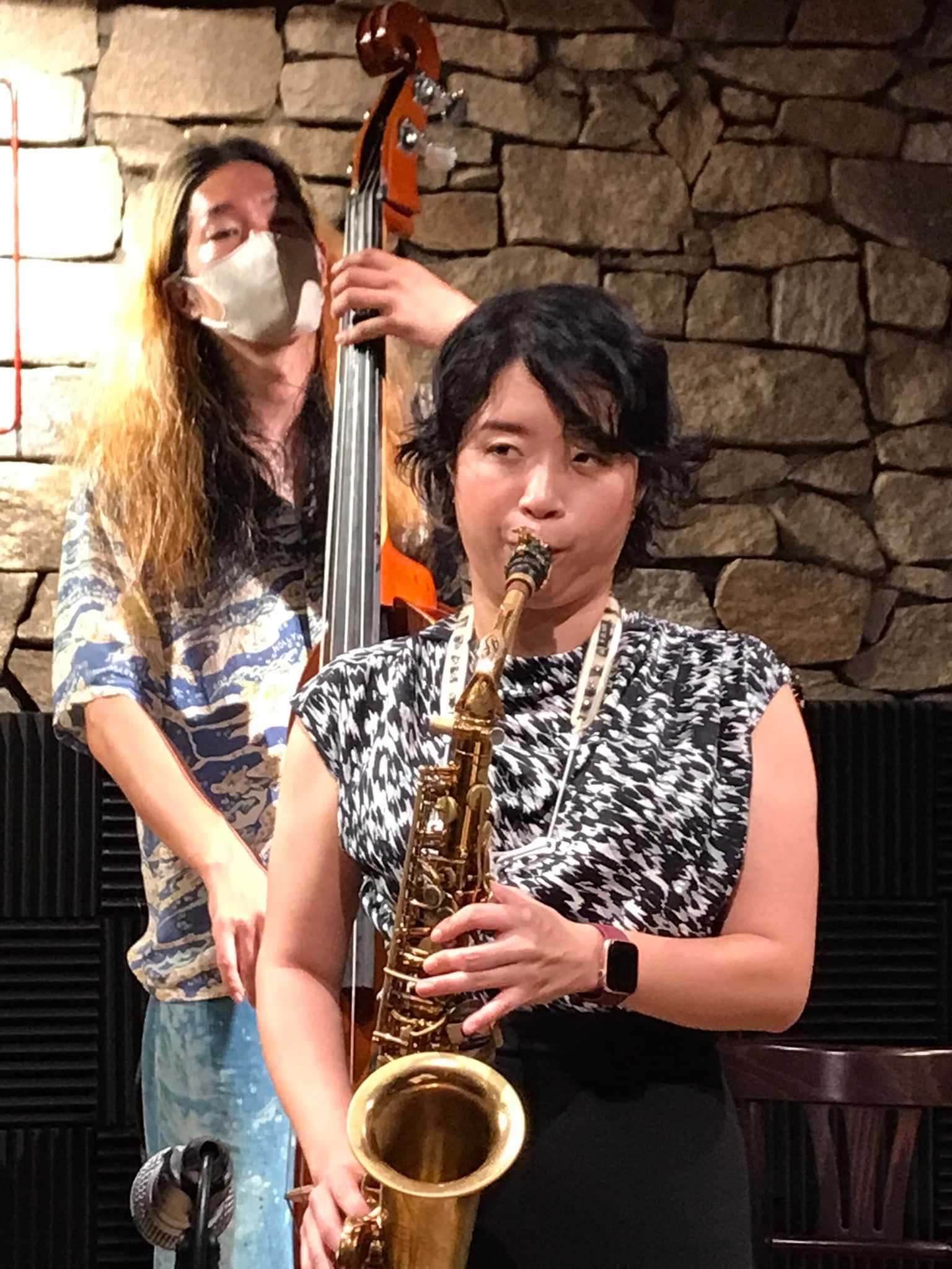 今日は西口君のトリオを聴きに六本木アルフィーに参上!今日のトリオは今年から始めたトリオで、徐々に曲が増えつつあるとのこと。西口君は珍しくソプラノサックスで通して、そこも聴きどころ。曲は西口君とDavidさんの曲がほぼ半分ずつ。<< 2022 Jul 5th (Tue) 西口明宏トリオ @六本木Alfie >>西口明宏(soprano sax) David Bryant(pf) 粟谷巧(b) 1.Habu Tree2.First Impression - David Bryant3.SP4.Lady In The Redskirt - David Bryant5.(新曲のBlues、タイトル未定)6.Blue Dolphin7.Higher Intelligence - David BryantEnc8.(新曲のBallad、タイトル未定)
