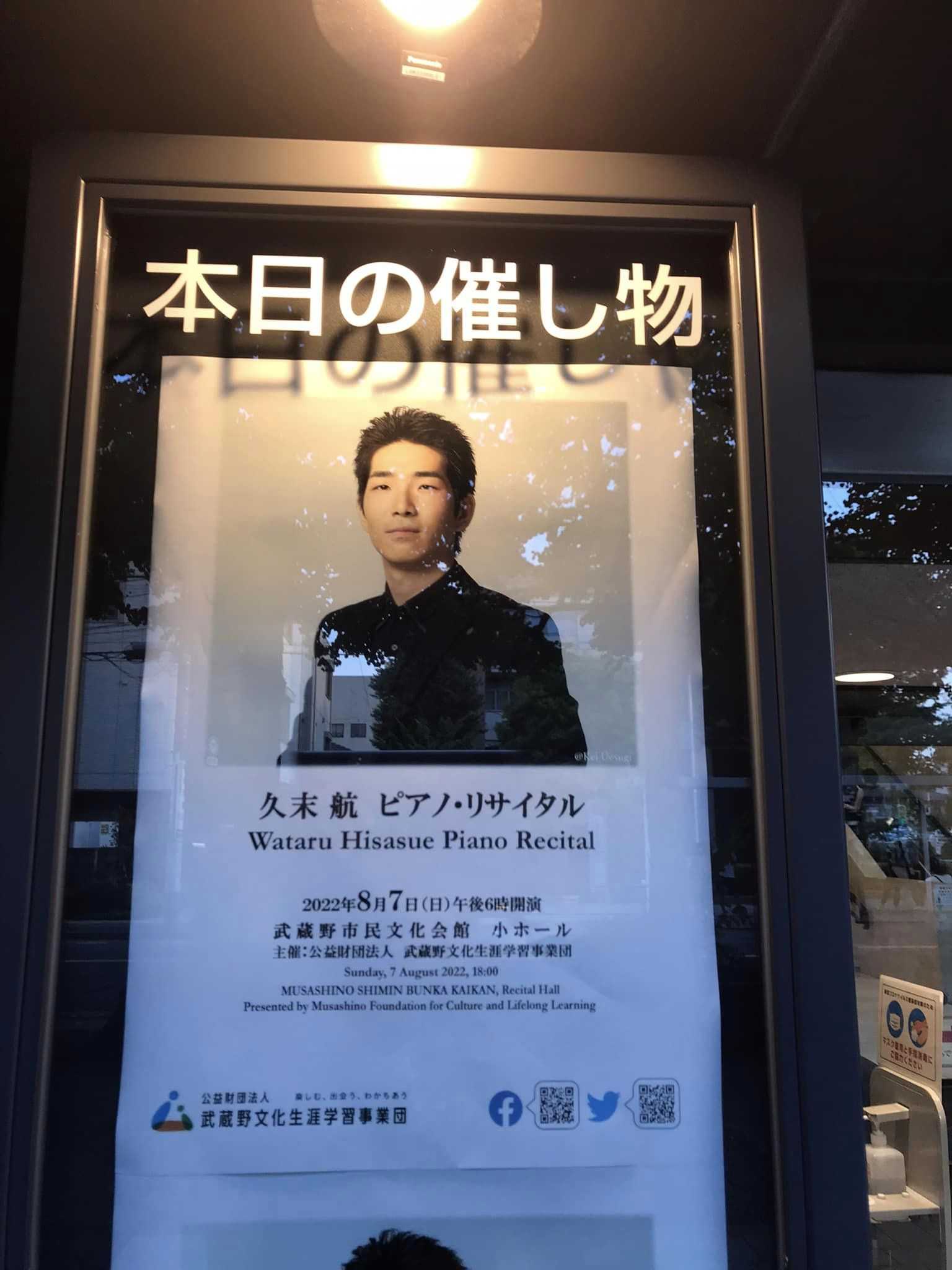 本日はクラシック。久末航(わたる)君のピアノ🎹を聴きに武蔵野市民文化会館 小ホールに参上!大好きな河村尚子さん以来11年振りの快挙で難関「ミュンヘン国際コンクール」第3位とのフレコミだったので、イの一番に予約。プログラムもユニークでパスカル・デュサパンの難曲を見事に弾きこなす。2022 Aug 7th 久末航 ピアノ・リサイタル@武蔵野市民文化会館 小ホールモーツァルト:ピアノソナタ第2番 K.280 へ長調Mozart:Piano Sonata No.2 in F major, K.2801. Allegro assai2. Adagio3. Prestoメンデルスゾーン:幻想曲 (スコットランド・ソナタ) op.28Felix Mendelssohn | FANTASIA in F-sharp minor, Op. 28 ("Sonate écossaise")1.Con moto agitato2.Allegro con moto3.Prestoリスト:「巡礼の年 第2年 イタリア」よりLiszt, Franz Annees de pelerinage Deuxieme annee Italie 5. Sonetto 104 del Petrarca6. Sonetto 123 del Petrarcaパスカル・デュサパン:「ピアノのための7つのエチュード」よりPascal Dusapin : Sept études pour piano (1999-2001)Étude pour piano n° 1 "Origami"Étude pour piano n° 2 "Igra"ラヴェル:夜のガスパールRavel “Gaspard de la nuit”第1曲「オンディーヌ」 Ondine第2曲「絞首台」 Le gibet第3曲「スカルボ」 Scarbo EncEC1.リスト:「リゴレット」による演奏会用パラフレーズLiszt's Rigoletto, Paraphrase de concert, S434EC2.メンデルスゾーン:無言歌集 Op.53-1「浜辺で」Mendelssohn:Lieder ohne worte Op.53-1EC3.プーランク: 3つのノヴェレッテ 第3番 ホ短調Poulenc/3 Novelettes No.3 Eminor