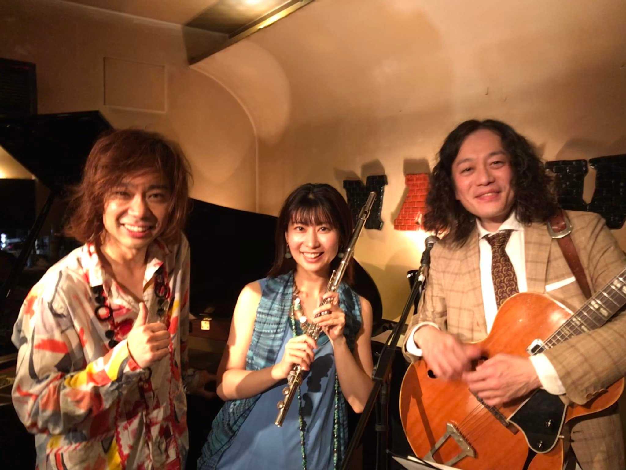 昨日<<2022 Aug 11th Kiss the Cats 2ndアルバム『Bless on the sky』発売記念@まほろ座MACHIDA>> に引き続き、益子麻奈さんのライブ2Daysの二日目。昨日も演奏されたKiss the Cats 2ndアルバム『Bless on the sky』の収録曲、「1.季節の便り」、「2.Midnight Blues」、「6.鼓動」、「7.木漏れ日」、「8.君を想う」、「10.Pure Imagination」、「12.Think of You」の7曲に加え、曽根さん、麻奈さんのお好きなSoulのナンバー、遠藤さんのお好きなOscar Petersonの曲など盛り沢山。「Pure Imagination」は元々はSetlistに無かったが、遠藤さんのたってのご希望で「熱烈」演奏。歌詞は十分に復習していたので、深く味わうことが出来て昨日よりも大いに楽しめた。曽根さん、麻奈さん、MotownなどSoul Musicが特にお好きだそうで、次回もSoul Musicが楽しめそう。<<2022 Aug 12th gt曽根一馬 Trio@代々木ナル>> 曽根一馬 gt遠藤征志 pf益子麻奈 vo&flt1st1.季節の便り - 作詞作曲、曽根さん2.Midnight Blues - 作詞作曲、棚橋さん。はじめに遠藤さんの語りから。語りは曽根さんの詞3.When Summer Comes - Oscar Peterson。遠藤さんのお好きなOscar Petersonの曲をインストで。麻奈さん、ボーカル無しでフルート4.The Things We Did Last Summer5.I'll Be There - Jackson 5。Motownサウンドが曽根さんも麻奈さんもお好きということでセレクト。6.鼓動 - 作詞作曲、曽根さん2nd7.木漏れ日8.君を想う - 遠藤さんオリジナル。遠藤さんは鍵盤ハーモニカ9.Angel Eyes - Matt Dennis10.Pure Imagination - 遠藤さんのご希望でセレクト。11.What's Going On - やはりMotownサウンドの代表曲。ベトナム戦争の反戦ソング。Donny HathawayもLive盤に収録12.Think of You - 遠藤さんオリジナル。麻奈さんの作詞。Enc13.永遠の人 - 遠藤さんオリジナル。