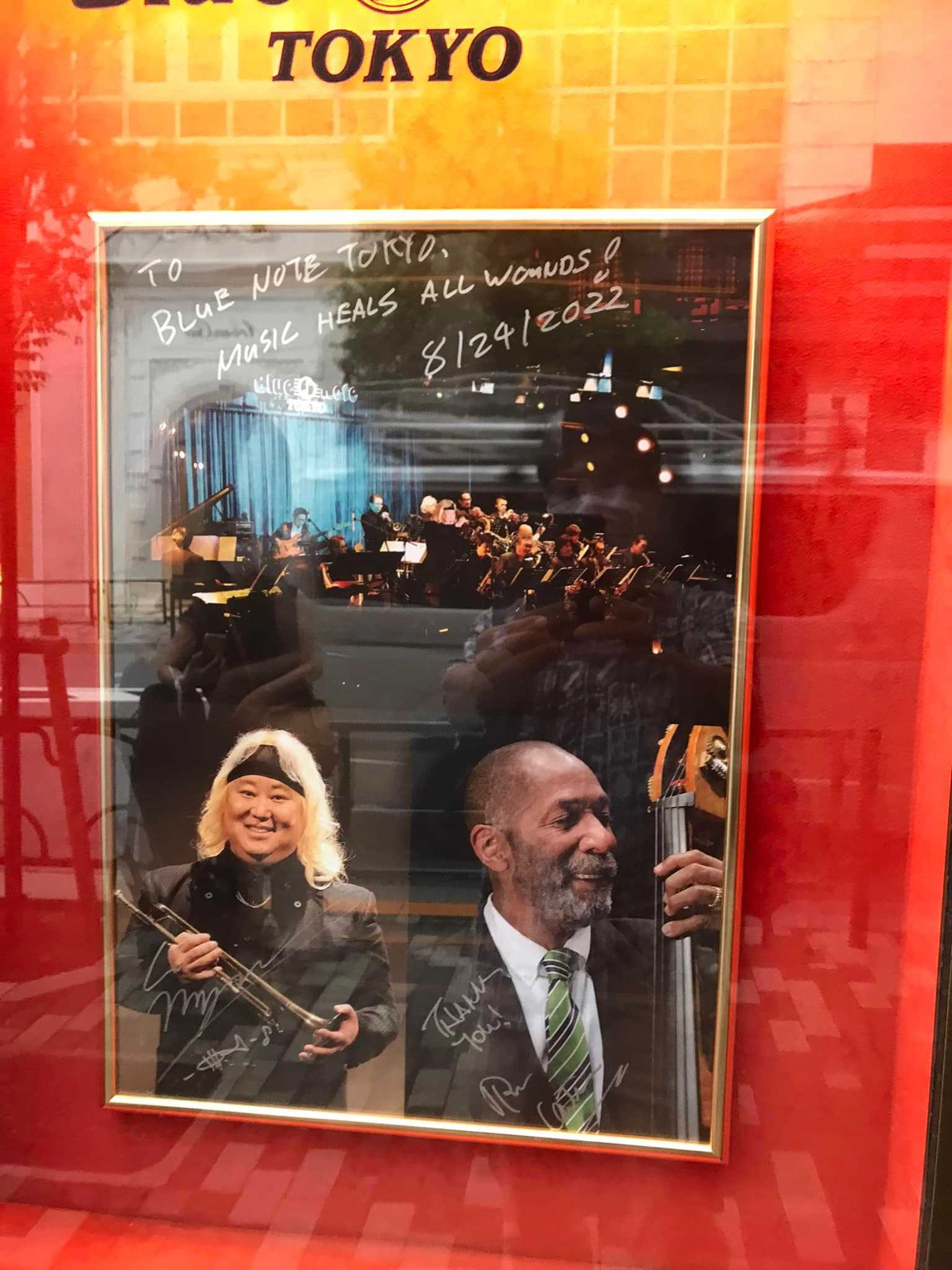 今日はRon CarterさんのトリオとBlue All Starsバンドの共演を聴きにBLUE NOTE TOKYOに参上!1stはRussell Maloneさんの横の席、2ndはRon Carterさんの真ん前の席で、お聴きした。2022 Aug 24th 1st&2nd Show RON CARTER & BLUE NOTE TOKYO ALL-STAR JAZZ ORCHESTRA directed by ERIC MIYASHIRORon Carter(b)/ ロン・カーター(ベース)Donald Vega(p)/ドナルド・ヴェガ(ピアノ)Russell Malone(g)/ラッセル・マローン(ギター)Eric Miyashiro(tp,conductor)/エリック・ミヤシロ(トランペット、コンダクター)Masato Honda(sax)/本田雅人(サックス)Atsushi Tsuzurano(sax)/黒葛野 敦司(サックス)Masanori Okazaki(sax)/岡崎正典(サックス)Kei Suzuki(sax)/鈴木圭(サックス)Ryoji Ihara(sax)/庵原良司(サックス)Syo Okumura(tp)/奥村晶(トランペット)Isao Sakuma(tp)/佐久間勲(トランペット)Atsushi Ozawa(tp)/小澤篤士(トランペット)Ryusuke Kanke(tp)/菅家隆介(トランペット)Yoshinori Tanuma(tp)/田沼慶紀(トランペット)Eijiro Nakagawa(tb)/中川英二郎(トロンボーン)Koichi Nonoshita(tb)/野々下興一(トロンボーン)Fumiya Abe(tb)/阿部史也(トロンボーン)Naoki Fujimura(tb)/藤村尚輝(トロンボーン)Takana Miyamoto(p)/宮本貴奈(ピアノ)Ryu Kawamura(b)/川村竜(ベース)Shinnosuke Takahashi(ds)/高橋信之介(ドラムス)1st1.Blue Horizon - エリックさんオリジナル2.EIGHT3.AH, RIO4.Doom Mood5.YOU ARE MY SUNSHINE - Ron Carter Solo Bass6.Cut&PasteEnc7.For Toddlers Only8.Spain2nd1.Blue Horizon - エリックさんオリジナル2.Receipt, Please3.Blues for D.P.4.SOFT WINDS5.Wait for the Beep6.Cut&PasteEnc7.For Toddlers Only8.Spain