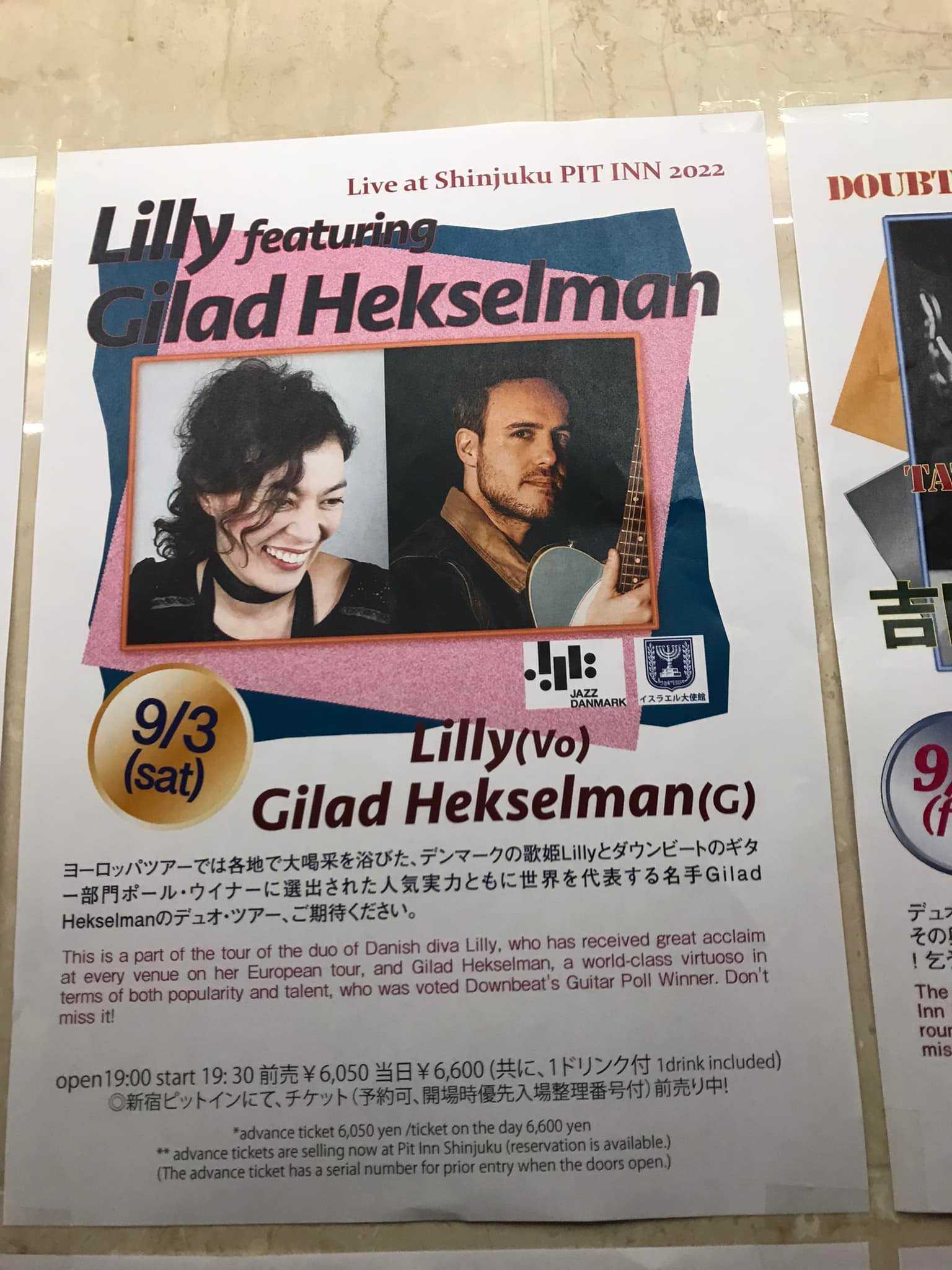 今日は Lilly featuring Gilad Hekselmanを聴きに新宿Pit Innに参上。お客さんの数が少ないかと思いきや、豈図らんや立ち見ありの大盛況。Gilad Hekselmanさんのギターファンが多いようだ。今、調べたら、<< 2016 Jul 4th 2nd Set/ SADAO WATANABE+3@Blues Note Tokyo>>、<<2018年6月9日 土 / ジョン・レイモンド&リアル・フィールズ@NHKふれあいホール>>、<<2018年6月12日 火曜 / ジョン・レイモンド&リアル・フィールズ@武蔵野SWING Hall>>の3回はGiladさんのギターをお聴きしているようで、今日が4回目(以上)の模様。今日はボーカルとのDUOなのでGiladさんのギターの神髄を余すところなく味わえた。<<2022 Sep 3rd/ Lilly featuring Gilad Hekselman@新宿Pit Inn>>Lilly(vocal) Gild Hekselman(guitar)