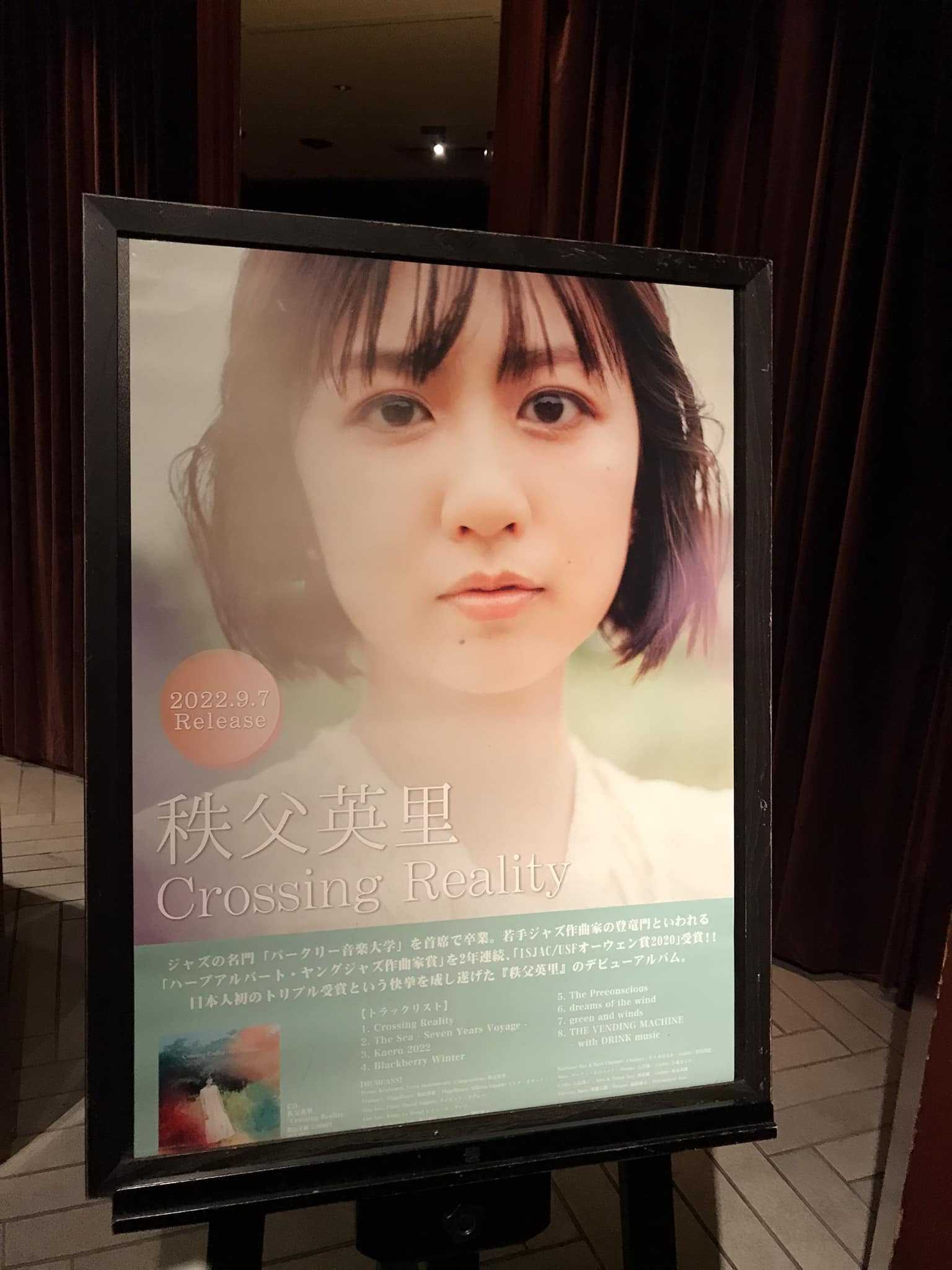 今日は秩父英里さんのラージアンサンブルを聴きに丸の内COTTON CLUBに参上。秩父英里ラージアンサンブル 2021.12.5(第21回 福吉ジャズ@初潮旅館)は何回かYoutubeのアーカイブをお聴きして素晴らしかったので、今日も楽しみにしていた。英里さんのお気に入りの選りすぐりメンバーで感動的なライブに。<<2022 Sep 8th ERI CHICHIBU LARGE ENSEMBLE 秩父英里 ラージアンサンブル@丸の内COTTON CLUB>>秩父英里 (composer,director,pf&key)曽根麻央 (tp/fgh)菊田邦裕 (tp/fgh)駒野逸美 (tb)デイビッド・ネグレテ (as,fl)西口明宏 (ts,ss)佐々木はるか (b.sax,b.cl,cl)加藤真亜沙 (pf)苗代尚寛 (g)マーティ・ホロベック (wb/eb)石若駿 (ds)1st1. Crossing Reality2. The Sea - Seven Years Voyage3. Kaeru 20224. Blackberry Winter5. The Preconscious6. dreams of the wind7. THE VENDING MACHINE - with DRINK music2nd1. Crossing Reality2. The Sea - Seven Years Voyage3. Kaeru 20224. Blackberry Winter5. The Preconscious6. dreams of the wind7. green and winds8. THE VENDING MACHINE - with DRINK musicソロ:1. Crossing Realityds 石若駿 → flt デイビッド・ネグレテ →ts 西口明宏/マーティ・ホロベックはeb 2. The Sea - Seven Years Voyagepf 加藤真亜沙 → fgh 曽根麻央/マーティ・ホロベックはwb 3. Kaeru 2022 英里さんピアノのトリオで。マーティ・ホロベックはeb 4. Blackberry Winter トリオ+ts 西口明宏+ fgh 曽根麻央+gt 苗代尚寛の6人でfgh 曽根麻央→ts 西口明宏/マーティ・ホロベックはwb 5. The Preconsciousgt 苗代尚寛→ss 西口明宏/マーティ・ホロベックはeb 6. dreams of the windwb マーティ・ホロベック→pf 加藤真亜沙→gt 苗代尚寛→b.sax佐々木はるか→tb 駒野逸美→tp 曽根麻央→fgh 菊田邦裕→ts 西口明宏→as デイビッド・ネグレテ→ds 石若駿