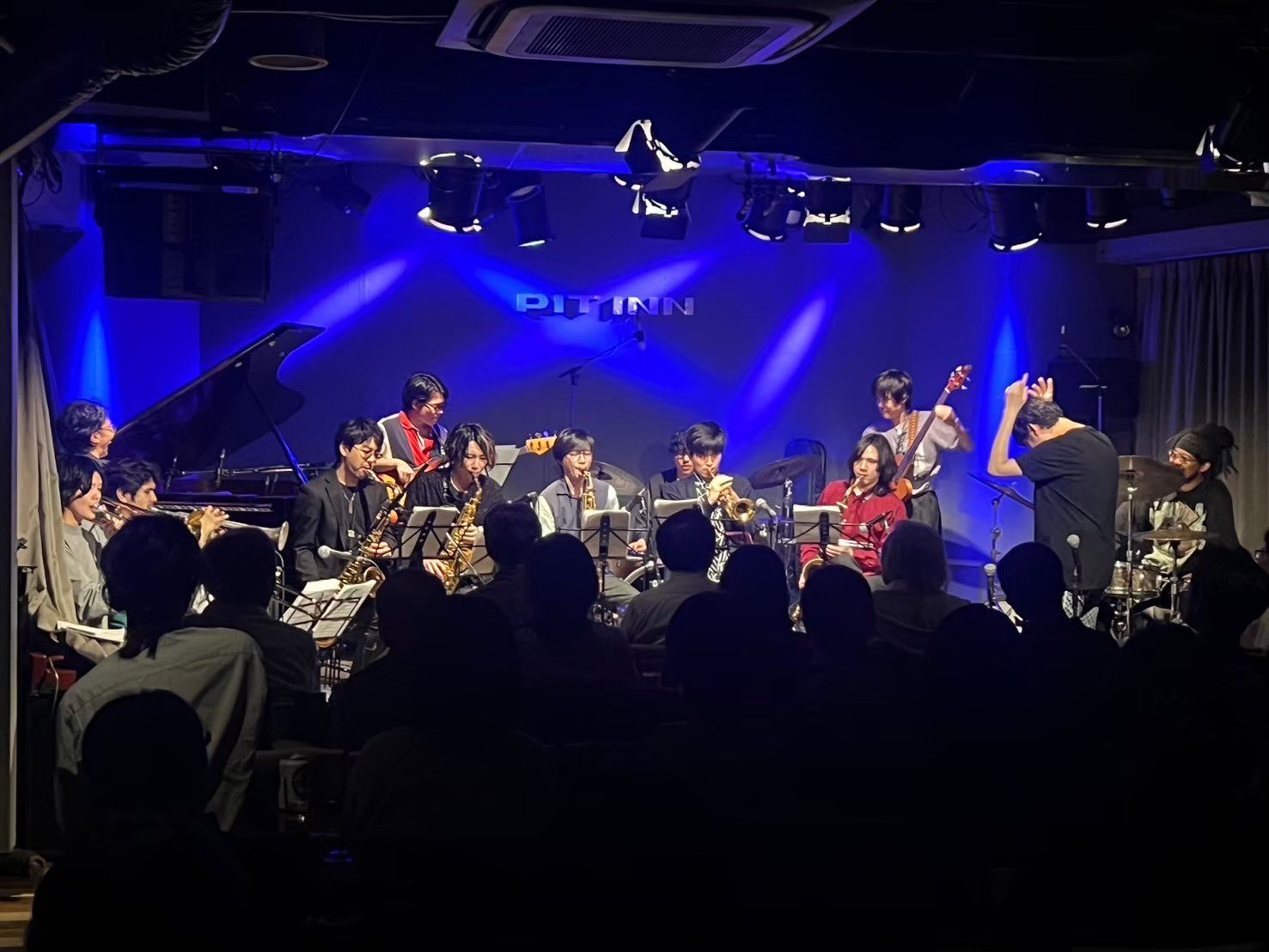 本日もダブルヘッダー。第一試合は松原慎之介君のオーケストラ@新宿ピットイン!5月8日(Wed)松原慎之介オーケストラ@新宿ピットイン松原慎之介(Ss,cond)佐藤敬幸,伊藤琢真(As) Erik Nelson,鈴木哲(Ts)鈴木雄太郎,村口亜星(Tp) 三原万里子(Tb)布施音人(P)冨樫マコト,高橋 陸(B) 高橋直希,中村海斗(Ds)1st1.Penny Saved -ソロはTs:Erik Nelson→As:伊藤琢真→B:冨樫マコト,高橋 陸→As:佐藤敬幸→P:布施音人2.That Little Boy /中村海斗 - Tb:三原万里子→Ts:鈴木哲→Tp:鈴木雄太郎→Ss:松原慎之介3.Lasped Away /布施音人 - (P+Ss)→B:高橋 陸→Tp:村口亜星→P:布施音人→As:佐藤敬幸→Ds:高橋直希,中村海斗4.Three View of A Secret /Jaco Pastrious - (P+Ss)→Ts:鈴木哲→As:伊藤琢真→Ss:松原慎之介→As:佐藤敬幸→Ts:Erik Nelson→Ss:松原慎之介2nd5.坂道/高橋直希 - As:伊藤琢真→Ts:鈴木哲→Tb:三原万里子→Tp:鈴木雄太郎→Ts:Erik Nelson→(As:佐藤敬幸+P)→Ds:高橋直希 6.Beyond the Solstice/布施音人 - Ss:松原慎之介→P:布施音人→As:伊藤琢真→Ts:Erik Nelson→Ds:中村海斗→Ts:鈴木哲 7.High Ace/松原慎之介 - Ss:松原慎之介→Tp:鈴木雄太郎→As:佐藤敬幸→Ts:Erik Nelson→Ss:松原慎之介→As:佐藤敬幸→Ts:Erik Nelson→Ss:松原慎之介→Ds:高橋直希,中村海斗Enc8.歌舞伎町1番街のテーマ/松原慎之介 - Ss:松原慎之介→B:冨樫マコト→Tp:鈴木雄太郎→Ts:Erik Nelson→B:高橋 陸→P:布施音人→Ts:鈴木哲→→As:佐藤敬幸→Ss:松原慎之介