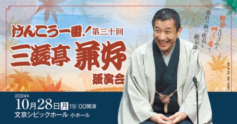 10/28 けんこう一番!第30回三遊亭兼好独演会@文京シビックホール 小ホール 一、まんじゅう怖い 兼好一、高砂や けろよん一、一分茶屋 兼好ー仲入りー一、テルミン奏者 クリテツ一、佐々木政談 兼好