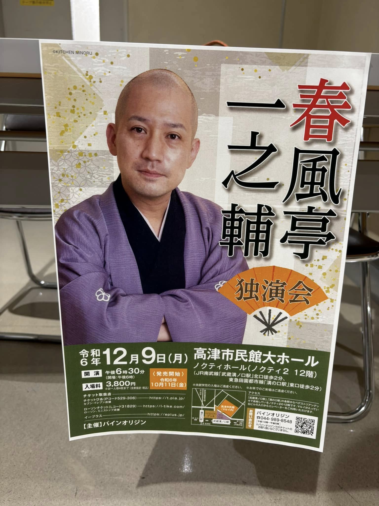Herbie Hancockさん、小曽根さん、馬場ヤンのライブの後は春風亭一之輔さんの独演会@高津市民館大ホールに参上! 2024/12/09(月) 春風亭一之輔独演会@川崎市高津市民館磯の鮑 与いち味噌蔵 一之輔 仲入り 富久 一之輔