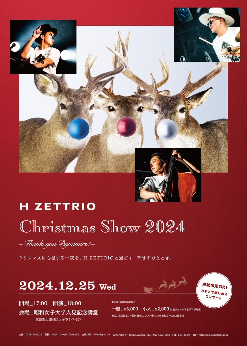 今日はH ZETTRIOを聴きに人見記念講堂に参上!本編ラストの「White Christmas」のみ撮影OK!だったので少し🤏撮影💖💕2024/12/25 (水)『H ZETTRIO Christmas Show 2024 〜Thank you Dynamics!〜』@昭和女子大学人見記念講堂Jingle Bells赤鼻のトナカイsilent nightあわてんぼうのサンタクロースHérisson véloDrummer is Dreamerベストマッチグランプリ飛ばしたっしょ夜空からの来訪者星の海に眠る宝石箱軌跡NIRE The BassmanDosukoi SunshineDynamicsDancing in the moodルンルンパノラマビューWhite christmas光のヒンメリ、輝く街今日の日はさようなら
