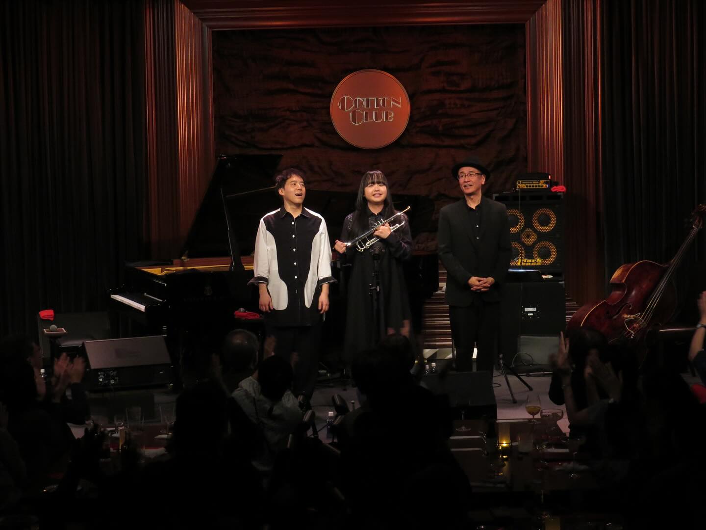 今日は井上陽介さんとSALTさんのDuo+ゲスト:松井秀太郎君のトリオを聴きに丸の内コットンクラブに参上!井上陽介さんとSALTさんのDuoはナカナカお聴き出来ないので、2Shows共に予約。1st Showは陽介さんの真ん前、2nd ShowはSALTさんの真横で、素晴らしいInterplayを堪能。SALTさん曰く、「1Show、2Show全く違う音空間」。お互いの紡ぎ出す音に瞬時に聴き取って、次の音を紡ぎ出す緊張のInterplay。何度も溜息しか出せない瞬間を味わった。秀太郎君が加わった3曲、「5. Steps of the Blue」、「6. Neapoloitan Dance」、「7.あこがれのリオデジャネイロ」も全く同じで、お互いの紡ぎ出す音に瞬時に聴き取って、次の音を紡ぎ出す緊張のInterplayが満載。同じ曲とは思えないダイナミクスを感じた。1st Showのアンコール曲は聴きにいらしていた小曽根真さんがSit-In&SALTさんとの連弾。緊張のInterplayだけでなく、陽介さんのMCと「MCの達人」SALTさんの軽妙なTalkと「2. Delicious Breeze」とコード進行が似ているらしい、あの曲のソロピアノも聴けて楽しかった。2025 3.20 thu. 井上陽介 × 塩谷哲 featuring 松井秀太郎井上陽介 (b)塩谷哲 (p)【Guest】松井秀太郎 (tp)1st&2nd1. Morning bliss (SALT)2. Delicious Breeze(SALT)3. To Be Stars(井上陽介)4. Bullet Train(Mike Mainieri)5. Steps of the Blue (松井秀太郎)- Trioで6. Neapoloitan Dance (Tchaikovsky: "Swan Lake" より、Arr:松井秀太郎)- TrioでEnc7.あこがれのリオデジャネイロ(SALT)- Trioで