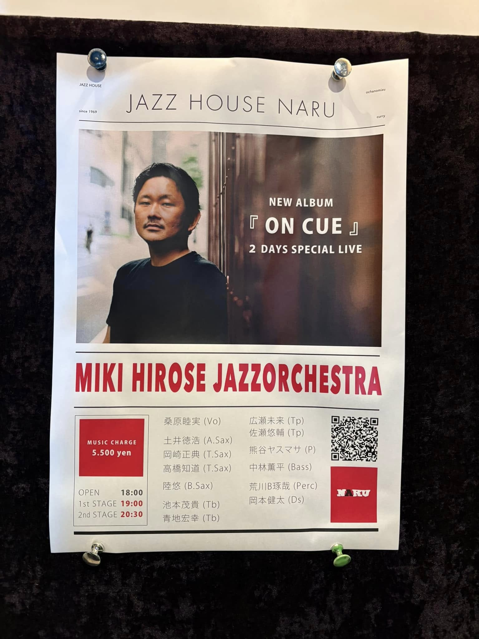 今日は広瀬未来君のJazz Orchestraを聴きに御茶ノ水NARUに参上!2025.03.03. mon.Miki Hirose Jazz Orhestra "ON CUE"発売記念ライブ@御茶ノ水NARUTrumpet: 広瀬未来、佐瀬悠輔Trombone: 池本茂貴、青地宏幸Sax: 土井徳浩、岡崎正典、高橋知道、陸悠Piano: 熊谷ヤスマサBass: 中林薫平Drums: 岡本健太 Perc: 荒川B琢哉Vocal 桑原睦実1st 1. Manteca - Dizzy Gillespie, Chano Pozo and Gil Fuller2. Mr. A Major - 広瀬未来。傷ついた高橋知道君のために作曲3. If You Could See Me Now - Tadd Dameron4. Moonshadow - ドビュッシー:月の光のアレンジを依頼された時、Inspireを受けて作曲5. All of You - with 桑原睦実。Cole Porter6. Through the Fire - with 桑原睦実。David Foster, Tom Keane, Cynthia Weil。7. A Nightingale Sang in Berkeley Square - with 桑原睦実。Eric Maschwitz, Manning Sherwin8. Love for Sale - with 桑原睦実。Cole Porter2nd 9. Night and Day - Cole Porter10. September in the Rain - Harry Warren, Al Dubin11. Sweet Lorraine - Cliff Burwell12. Chopin: Nocturne No. 2 In E Flat, Op. 9 No. 213. The Nearness of You - with 桑原睦実。Hoagy Carmichael, Ned Washington14. いい日旅立ち - with 桑原睦実。谷村新司15. I'll Close My Eyes - with 桑原睦実。Billy Reid, Buddy Kaye)16. Superstition - with 桑原睦実。Stevie Wonder17. FUNK 2025 - with 桑原睦実。広瀬未来Enc18.For All We Know - with 桑原睦実。 J. Fred Coots,Sam M. Lewis参考)本日3/3の柳家三三独演会 「柔と剛 番外編」横浜にぎわい座