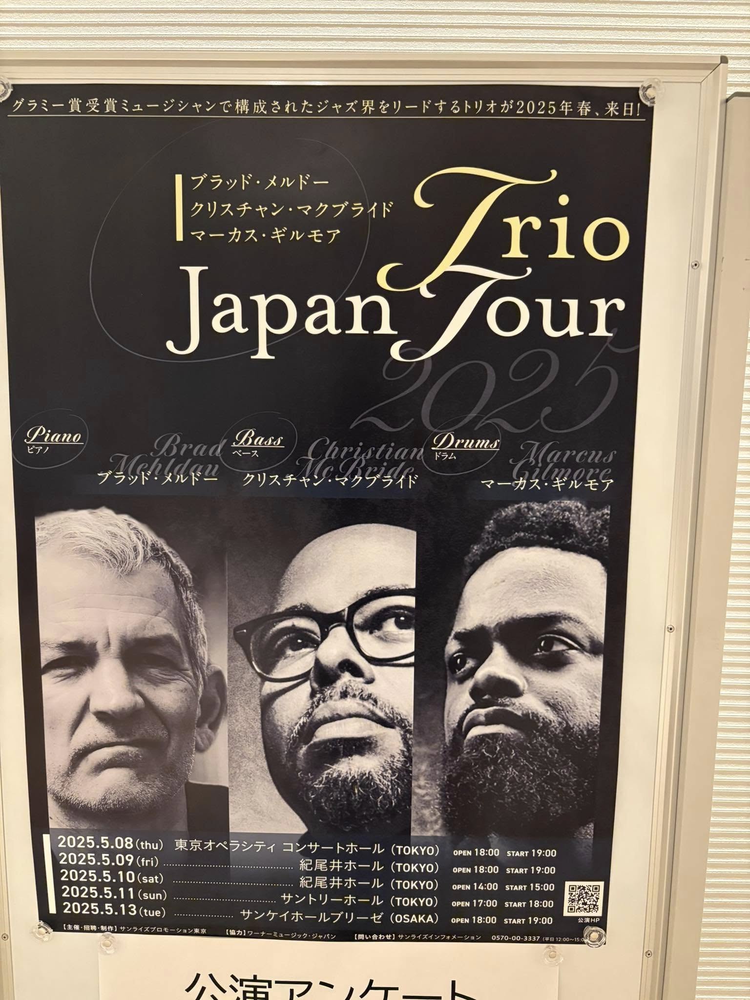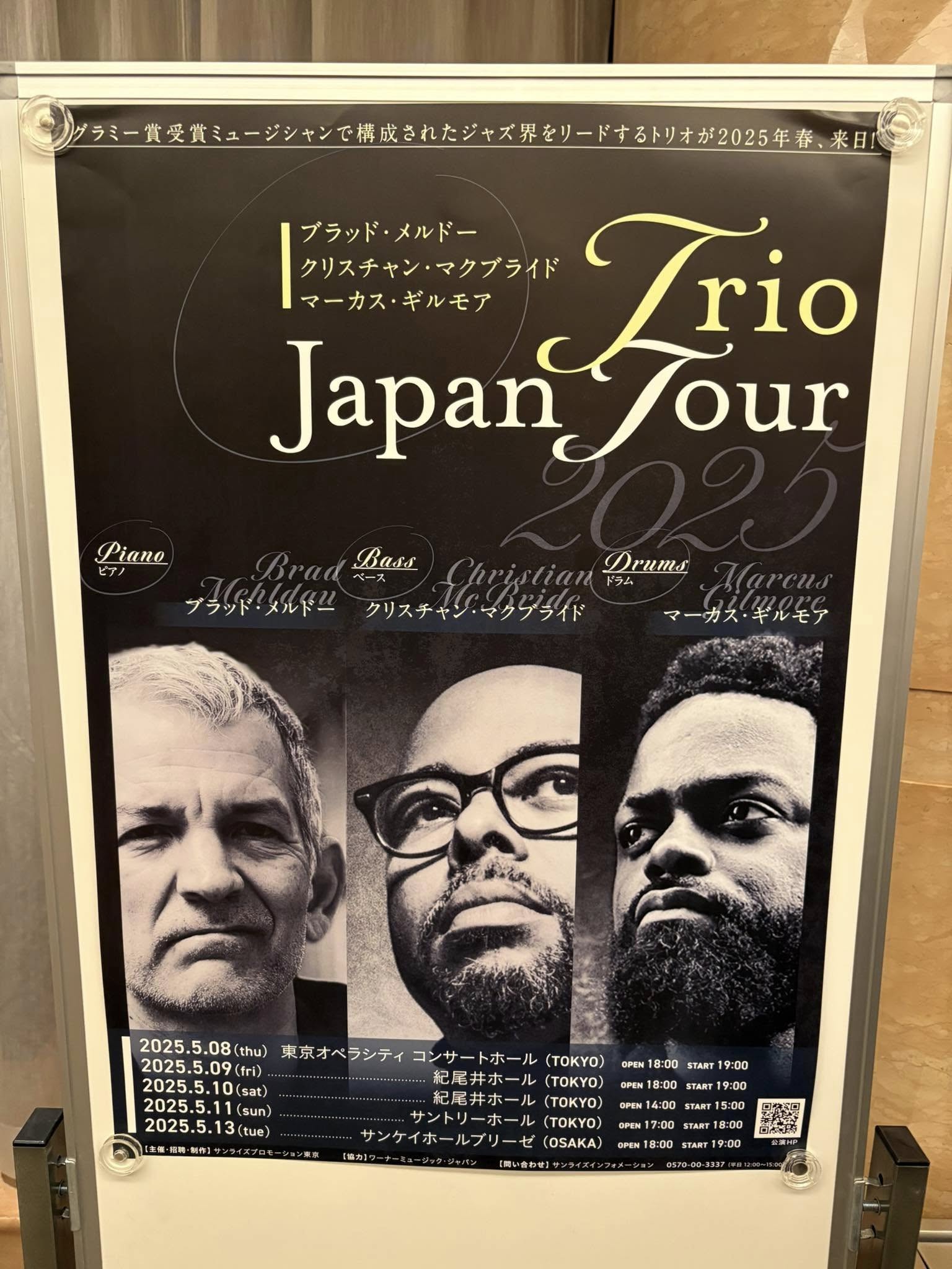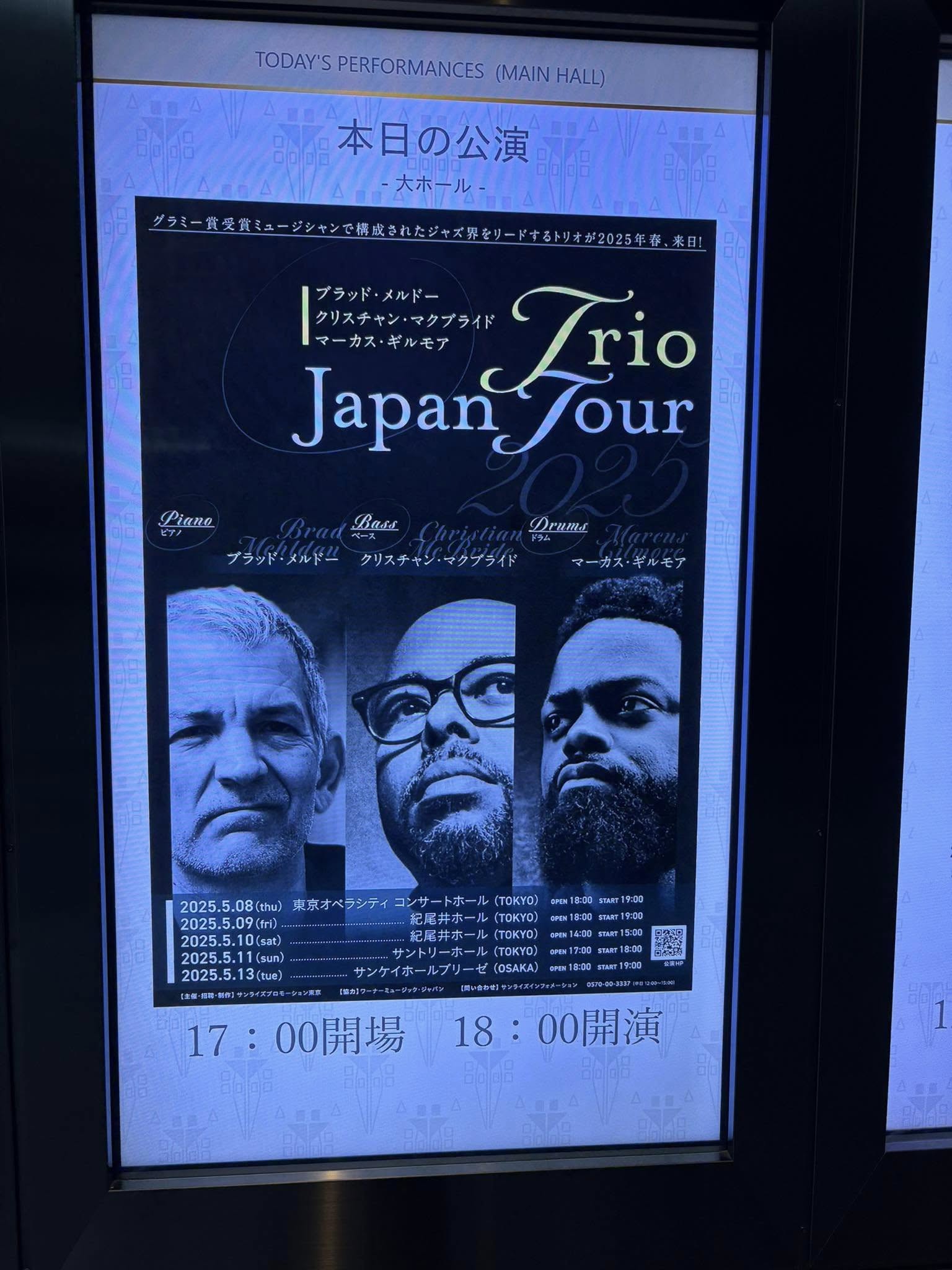 今日もBrad Mehldau&Christian McBride&Marcus Gilmore Trioを聴きに紀尾井ホールに参上。3Daysの2nd Show。2025.05.09 fri. Brad Mehldau&Christian McBride&&Marcus Gilmore Trio@紀尾井ホールpf Brad Mehldaub Christian McBrideds Marcus Gilmore