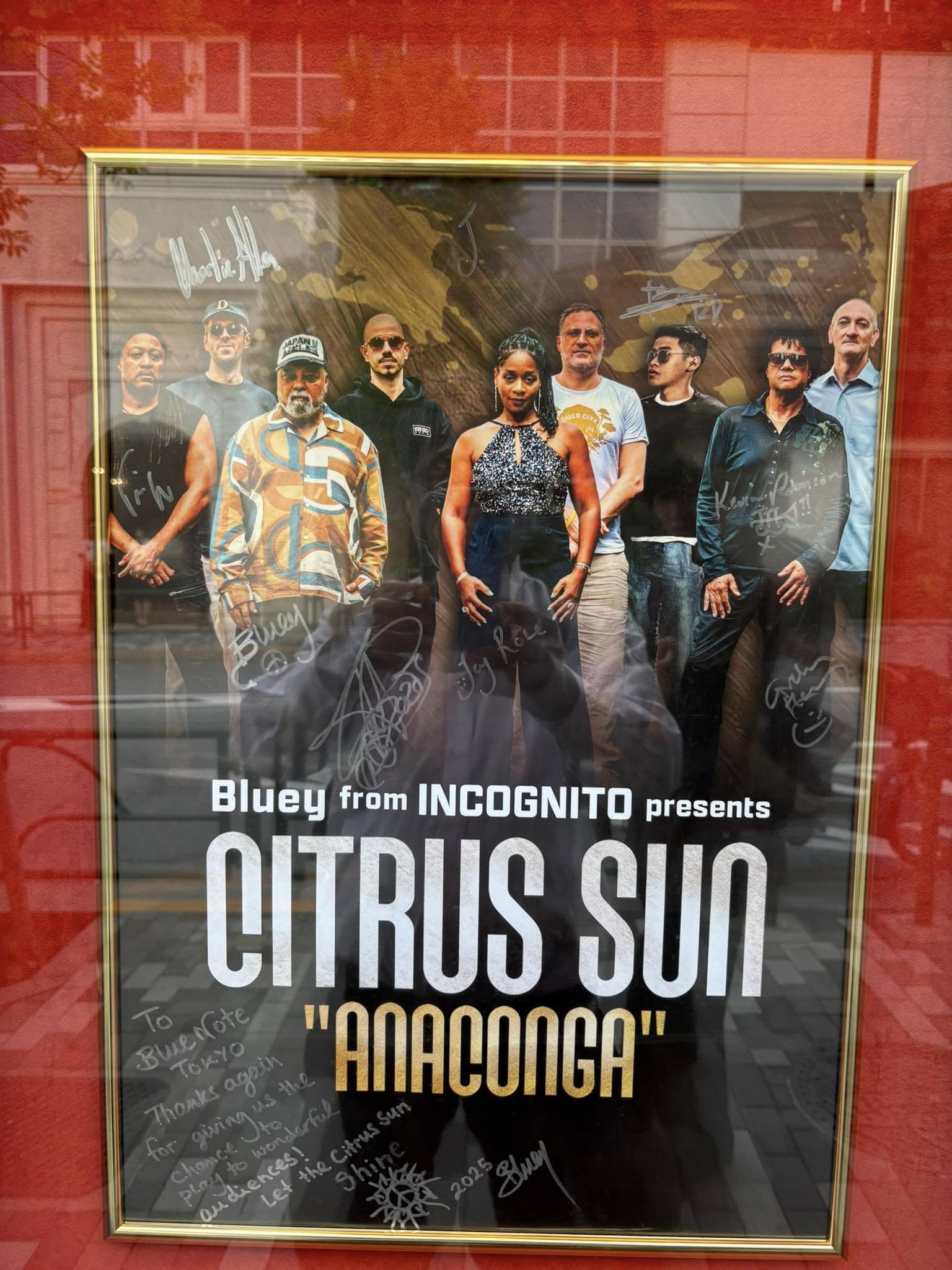 今日はBlueyチャン率いるCitrus Sunを聴きにBLUE NOTE TOKYOに参上!2025 5.3 sat.Bluey from INCOGNITO presents CITRUS SUN "ANACONGA"Jean-Paul 'Bluey' Maunick(vo,g) ジャン=ポール “ブルーイ” モーニック(ヴォーカル、ギター)Rega Dauna(hca) レガ・ダウナ(ハーモニカ)Joy Rose(vo) ジョイ・ローズ(ヴォーカル)Kevin Robinson(tp) ケヴィン・ロビンソン(トランペット)Graham Harvey(key) グラハム・ハーヴィー(キーボード)Francis Hylton(b,MD) フランシス・ヒルトン(ベース、ミュージックディレクター)Francesco Mendolia(ds) フランチェスコ・メンドリア(ドラムス)João Caetano(per) ジョアン・カエタノ(パーカッション)Charlie Allen(g) チャーリー・アレン(ギター)1st&2nd1.Mister Mellow - 2024年の新作『Anaconga』 2.Down For The Third Time - ボビー・コールドウェル 3.Honey - エリカ・バドゥ 4.Back To Wonderland - 2020年のアルバム『Expansions And Visions』 5.Mais Uma Vez - Renato Russo and Flávio Venturini 6.Ride Like The Wind - Freddie Hubbard&Christopher Cross 7.Send Me Your Feelings - 日野皓正 8.Bass/Drums/Percussion Solo 9.Santiago 10.Expansions And Visions11.Funkin' For Jamaica