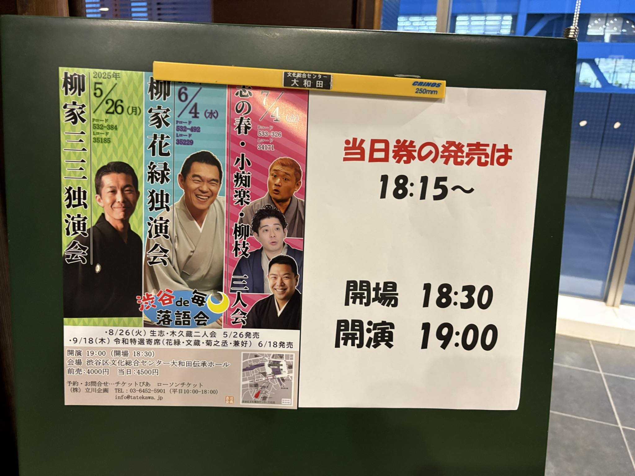 今日は柳家三三さんの独演会を聴きに渋谷伝承ホールに参上!2025/5/26(月) 渋谷で毎月落語会「柳家三三独演会」@渋谷区文化総合センター大和田 伝承ホール 一.「堀ノ内」立川志音一.「大山詣り」三三〜仲入り〜一.「大工🪚調べ」三三