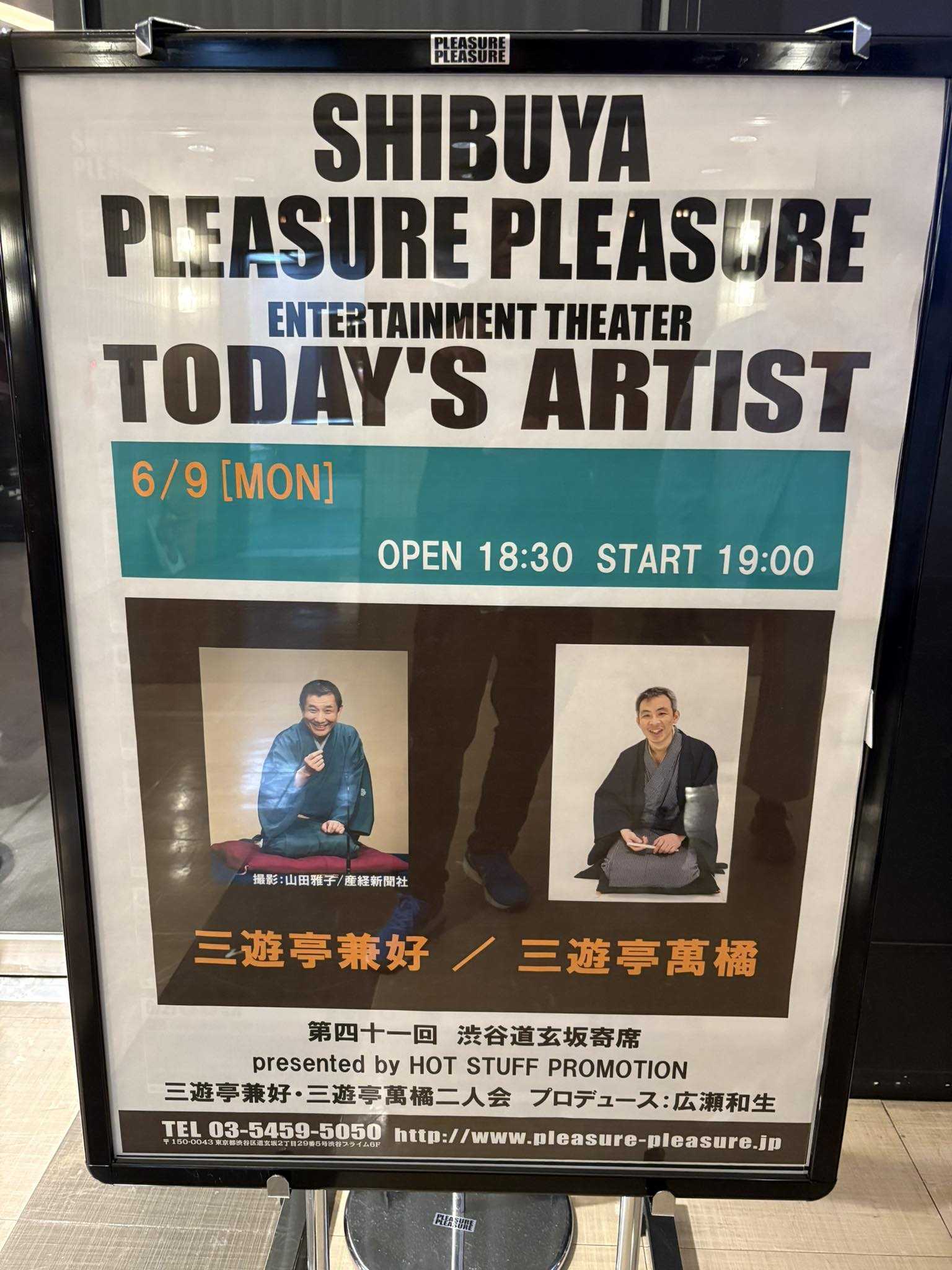 夕飯の後は奥様と兼好さんと萬橘さんの2人会@SHIBUYA PLEASURE PLEASURE2025年6月9日 第四十一回 渋谷道玄坂寄席 三遊亭兼好・三遊亭萬橘二人会@SHIBUYA PLEASURE PLEASUREけろよん「孝行糖」萬橘「悋気の独楽」•••札幌のタクシー運転手兼好「たがや」•••白鳥に古典落語!(仲入り)兼好「粗忽長屋」•••最近使わない言葉萬橘「庖丁」•••円山動物園の夫婦喧嘩