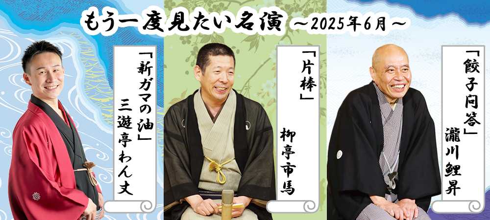 産経らくご「もう一度見たい名演」 6月瀧川鯉昇「餃子問答」、柳亭市馬「片棒」、三遊亭わん丈「新ガマの油」