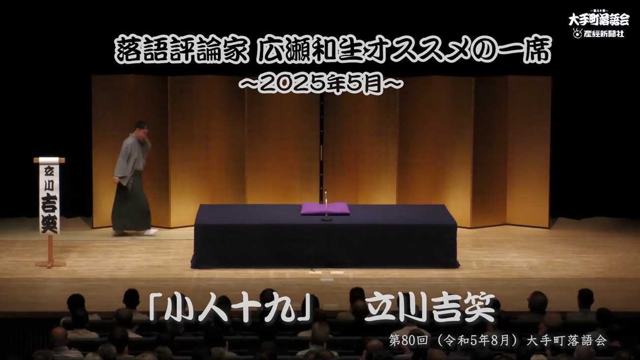 【落語評論家広瀬和生 オススメの一席】 5月は立川吉笑「小人十九」(第八十回大手町落語会 令和5年8月公演)8月5日(土)、第80回大手町落語会@日経ホール「一目上がり」#入船亭扇ぱい「小人十九」#立川吉笑「糖質制限初天神」#鈴々舎馬るこ「花筏」#柳家喬太郎~中入り~「鰻の幇間」#桃月庵白酒「船徳」#柳家さん喬