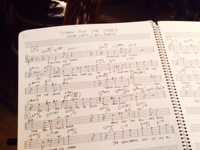 Bill Evansの作や演奏した美しい曲を中心に、ライブで欠かせない「Day By Day 」、「Bye Bye Blackbird」のお気に入りもありの素晴らしいライブ。どれも甲乙付け難いが私の特にのお気に入りは「On Green Dolphin Street 」、「Close To You 」、「So Many Stars」。「Touch of JAZZ」で聴いた「Skylark」も色褪せる、胸に沁みる曲ばかり。淳さんのAutheticなピアノが麻美子さんの力をさらに引き出し、小松さんのtsがナキの哀愁を高める。写真の「Turn Out The Stars 」の譜面は人前で今日初めて歌った記念に。ノイズは料理も美味しいし、JAZZの音が店内に沁み込んでいる、とても良いお店。また、ライブで再訪したい。