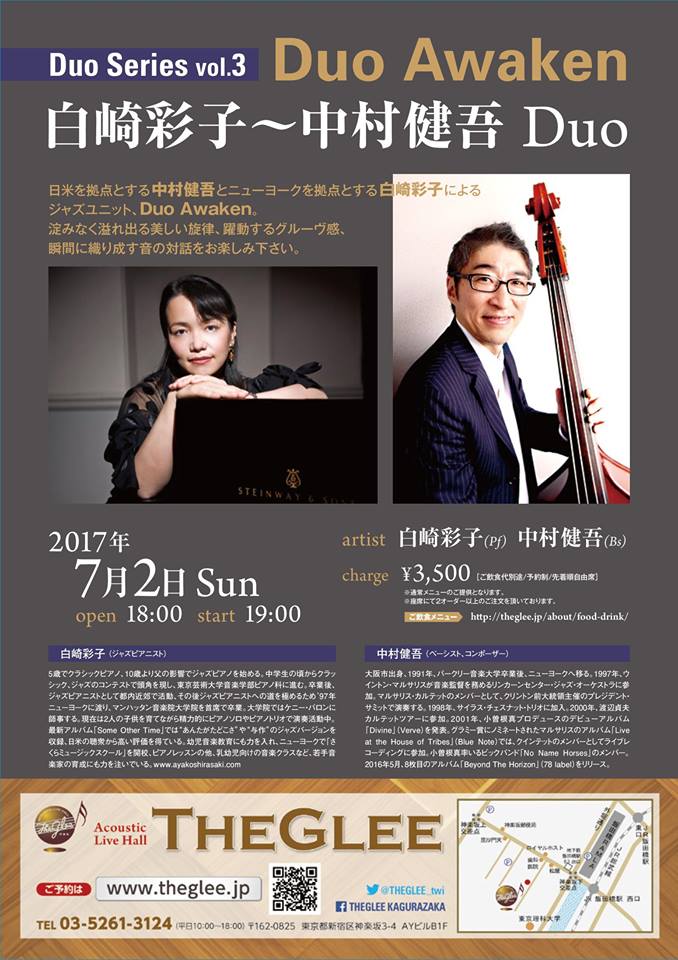 << 2017 Jun 2nd/ Duo Awaken 白崎彩子〜中村健吾 Duo@神楽坂 TheGLEE>>