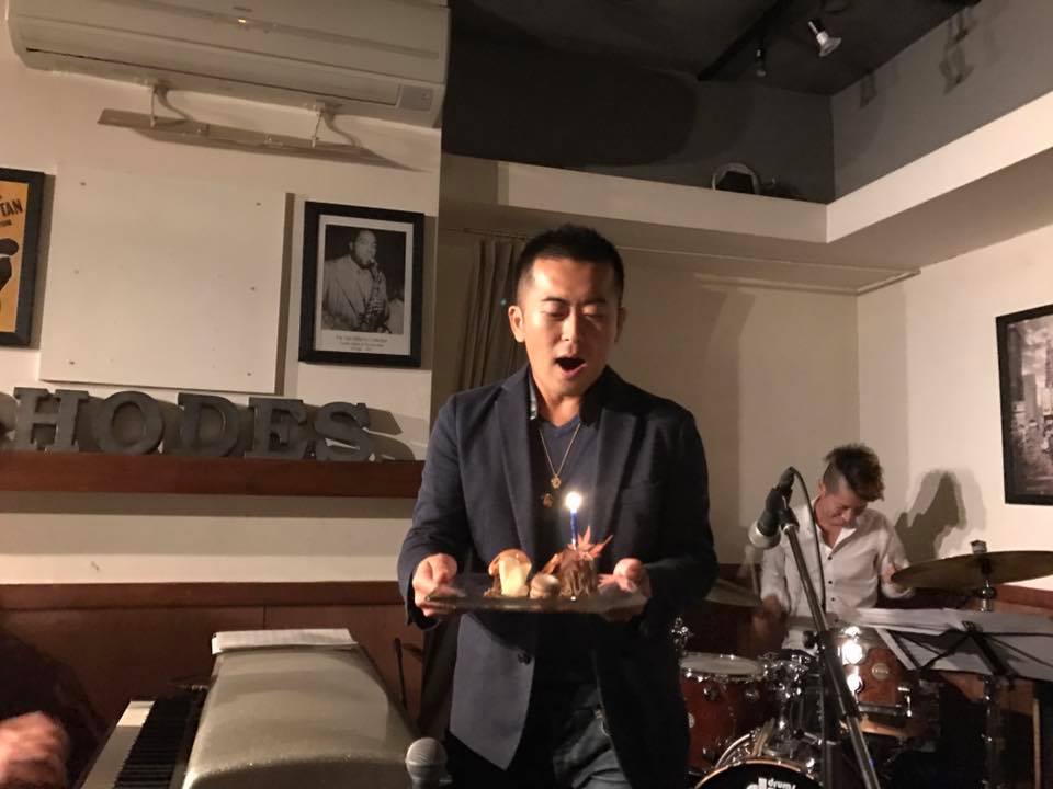 今日は宮里さんの34歳のお誕生日とのことでサックス🎷だけでなく、ケーキのロウソクも「吹く」。
