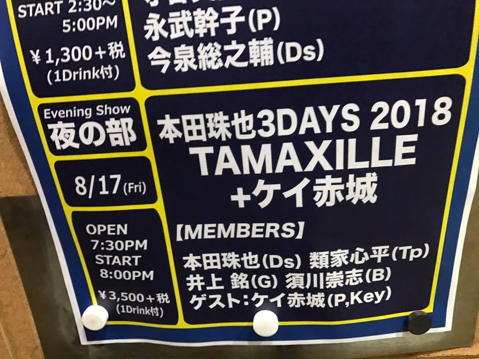 << 2018 Aug 17th 《TAMAXILLE+ケイ赤城》@新宿ピットイン>>