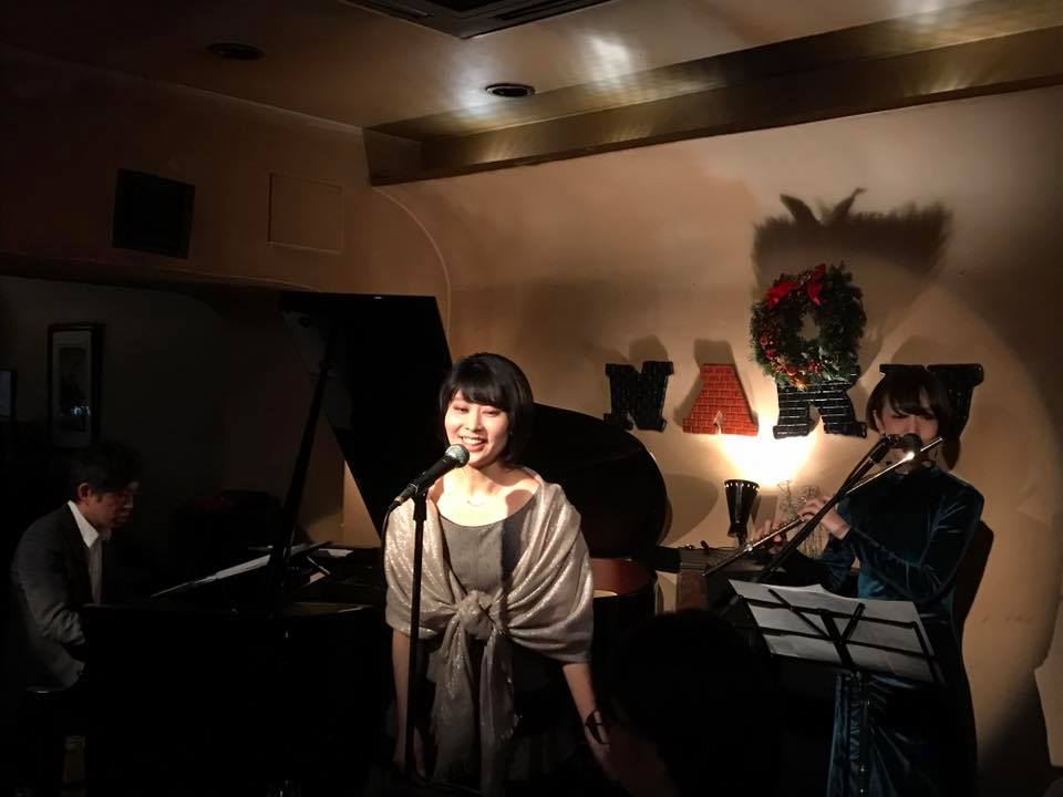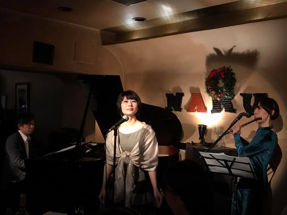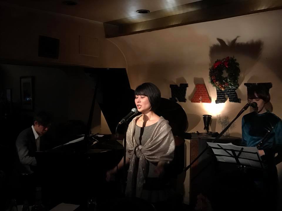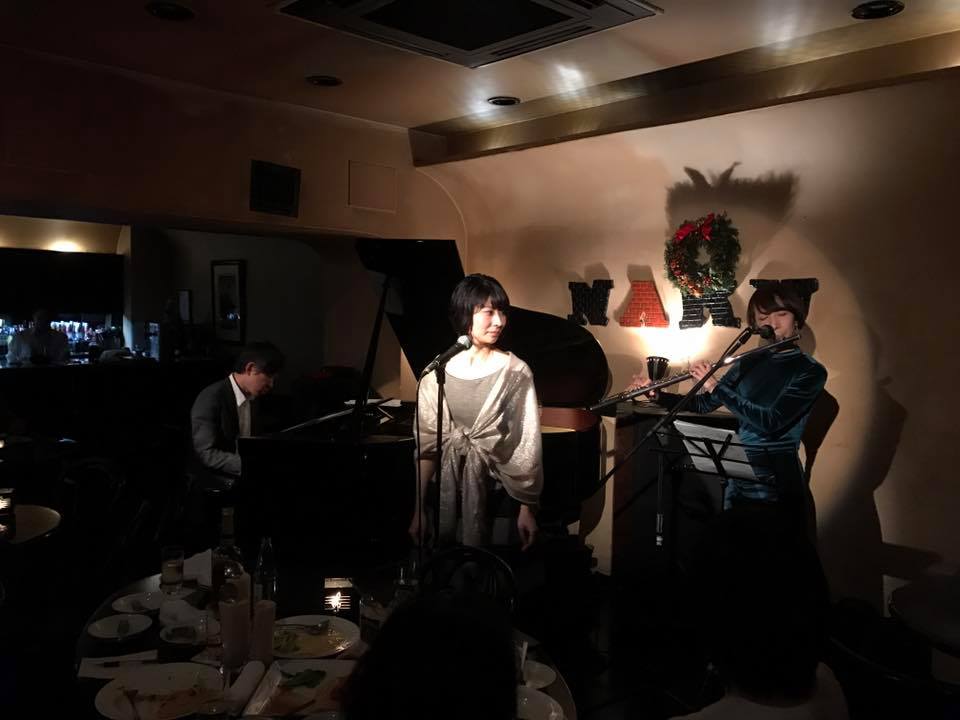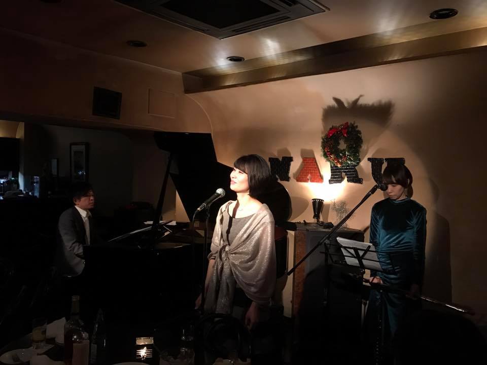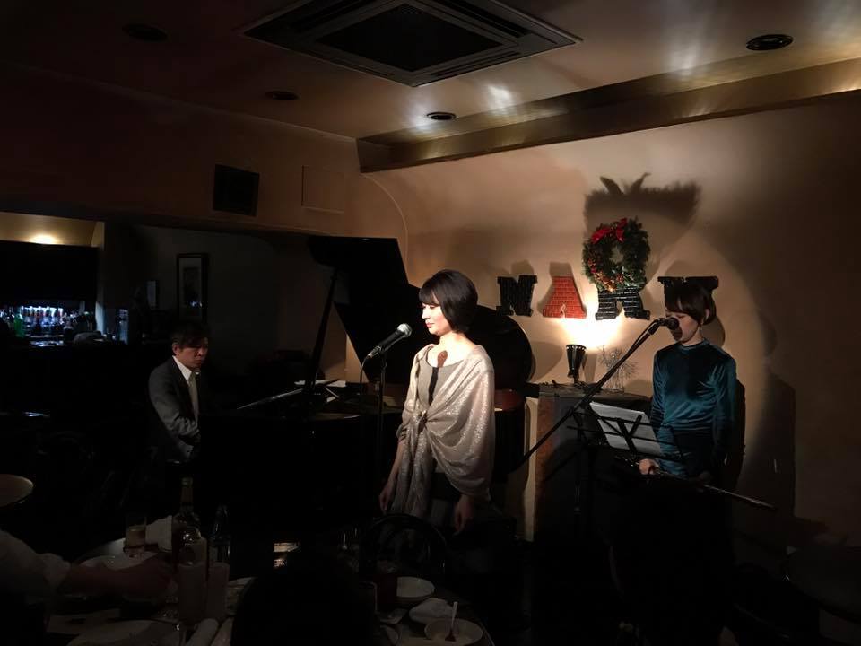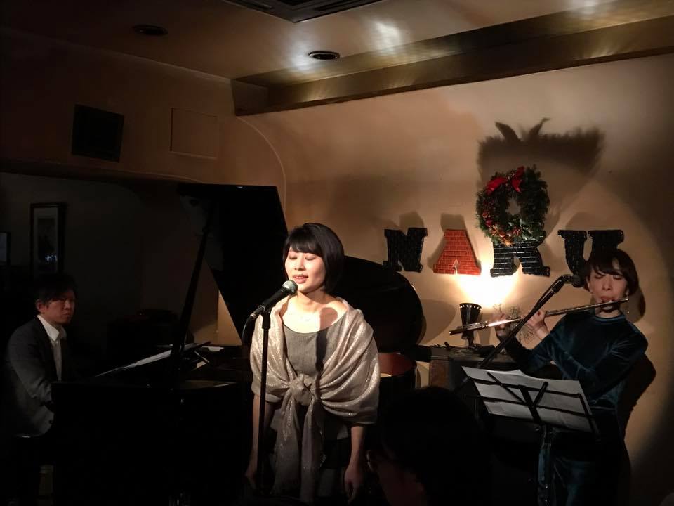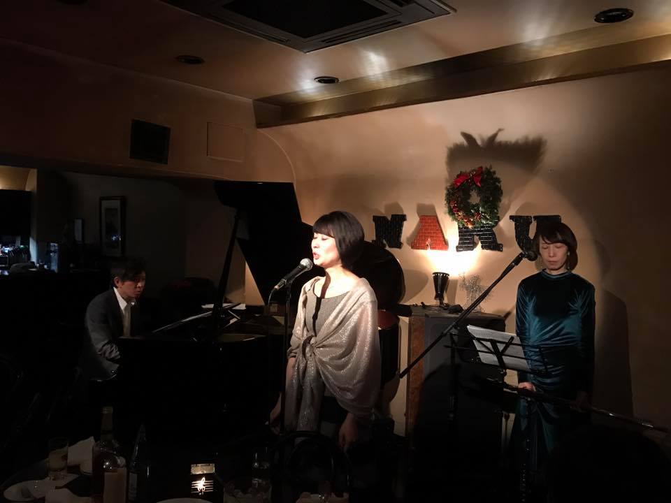 << 2018 Dec 12th/vo益子麻奈トリオ@代々木NARU>> vo益子麻奈 pリン・ヘイテツ flt鈴木康恵 1st 1.インスト Beautiful Love 2.インスト Moonlight in Vermont 3.麻奈さん登場 On a Clear Day 4.My Foolish Heart-アコースティックな音が沁みる 5.Tea For Two-三拍子で実に新しいTea For Two 6.I'll be home for Christmas 7.Girl Talk 2nd 8.インスト ?Dindi 9.インスト God Rest Ye Merry, Gentleman-先日のウイリアムス浩子さんのライブ@吉祥寺sometime 10.麻奈さん登場 Stardust-バースから。Hoagy Carmichaelその1 11.Georgia on My Mind-Hoagy Carmichaelその2 12.Blue Sky 13. 海を見ていた午後-本日の日本語の歌。横浜の山手、根岸駅の方が近いかも? 14.The Rose