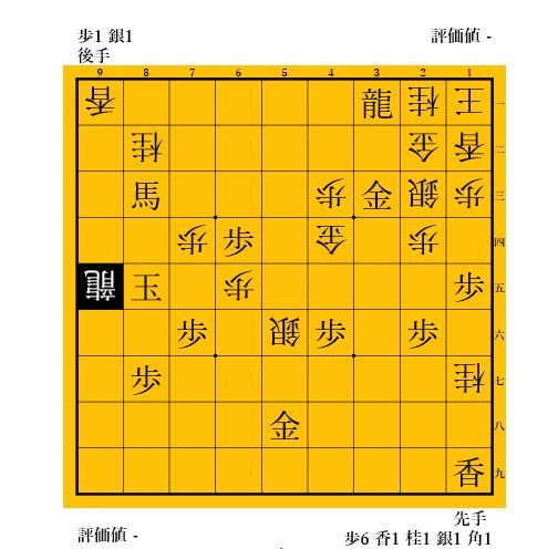 参考図) 168手目 △8五桂打以下の投了図以下は ▲8六王 △8九龍 ▲8八歩打 △同龍 ▲8七歩打 △9七龍 ▲8五王 △9五龍までの詰み。