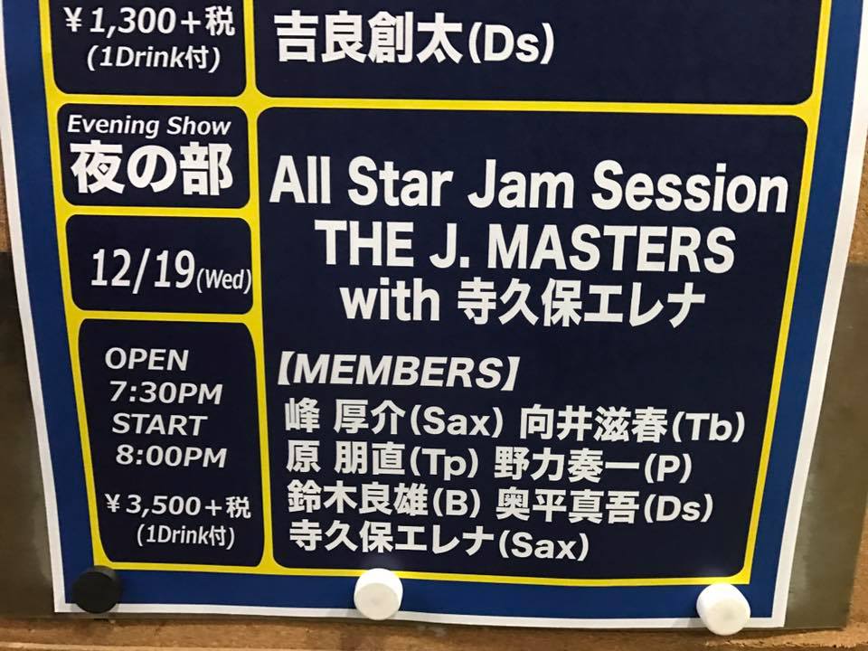 All Star Jam Session THE J. MASTERS with 寺久保エレナ@新宿ピットイン >>