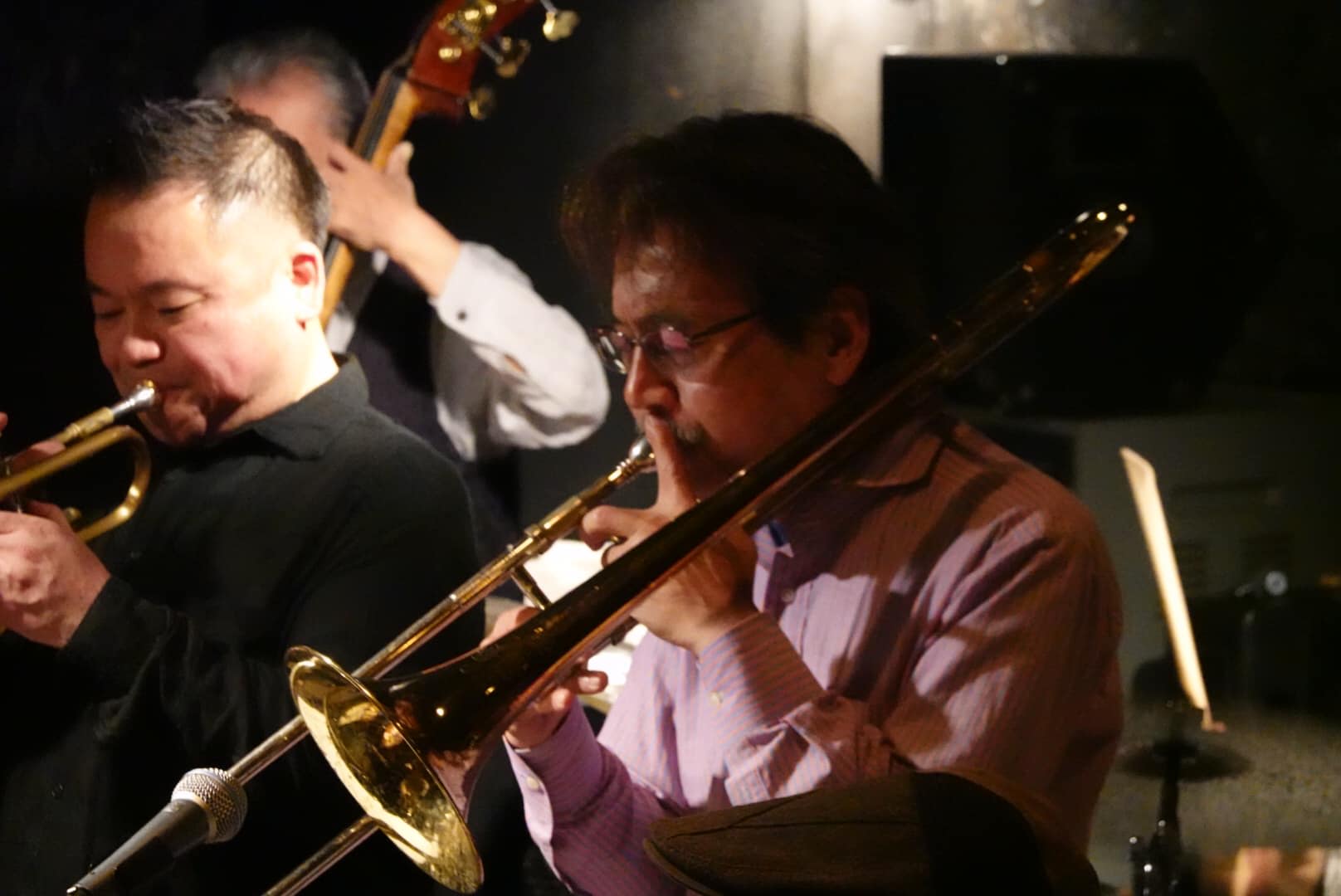 2nd 5.Recado Bossa Nova-J Mastersのピアノ🎹だった辛島文雄さんアレンジバージョンで。 6.Cleopatra's Dream-ピアノ🎹トリオ 7.Ellen David-Charlie Hadenの美しいバラード。エレナさんと向井さんが外れて、ts峰さんとtp原さんの2管で 8.A Night in Tunisia Enc 9.What a Wonderful World-野力さんアレンジバージョンで