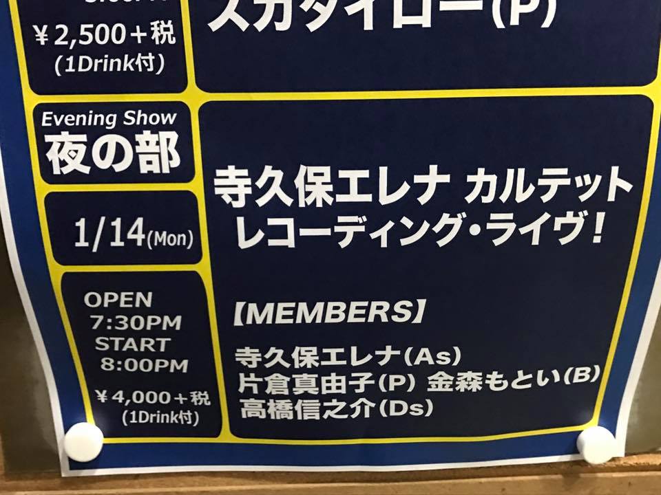 << 2019 Jan 14th 寺久保エレナ (As/Ss) カルテット@新宿ピットイン >>