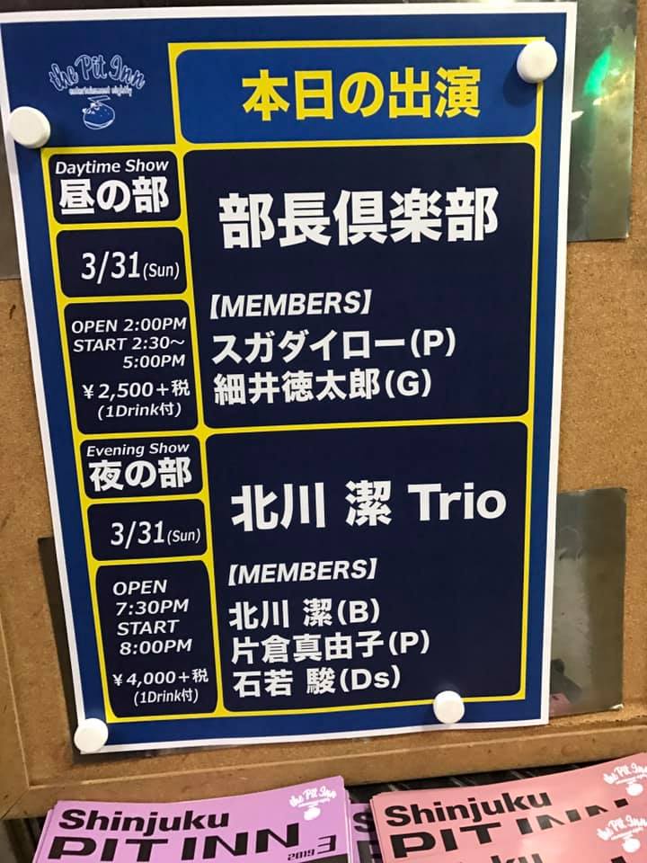 << 2019 Mar 31th 北川 潔(b)トリオ@新宿ピットイン>>