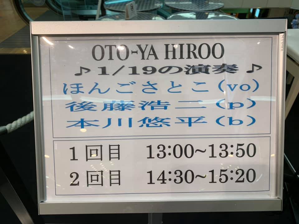 <<2020年1月19日 Sun [OTO-YA HIROO] ほんごさとこ(vo)トリオ @広尾プラザ2F>>
