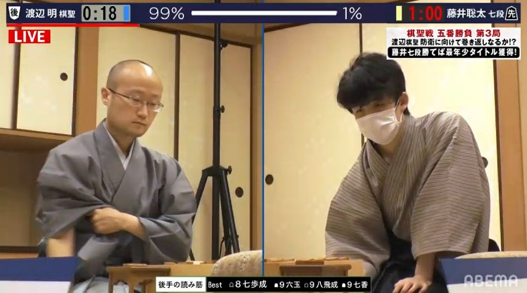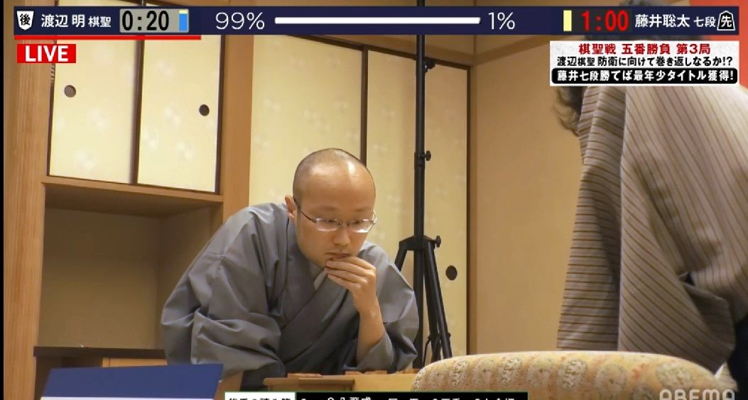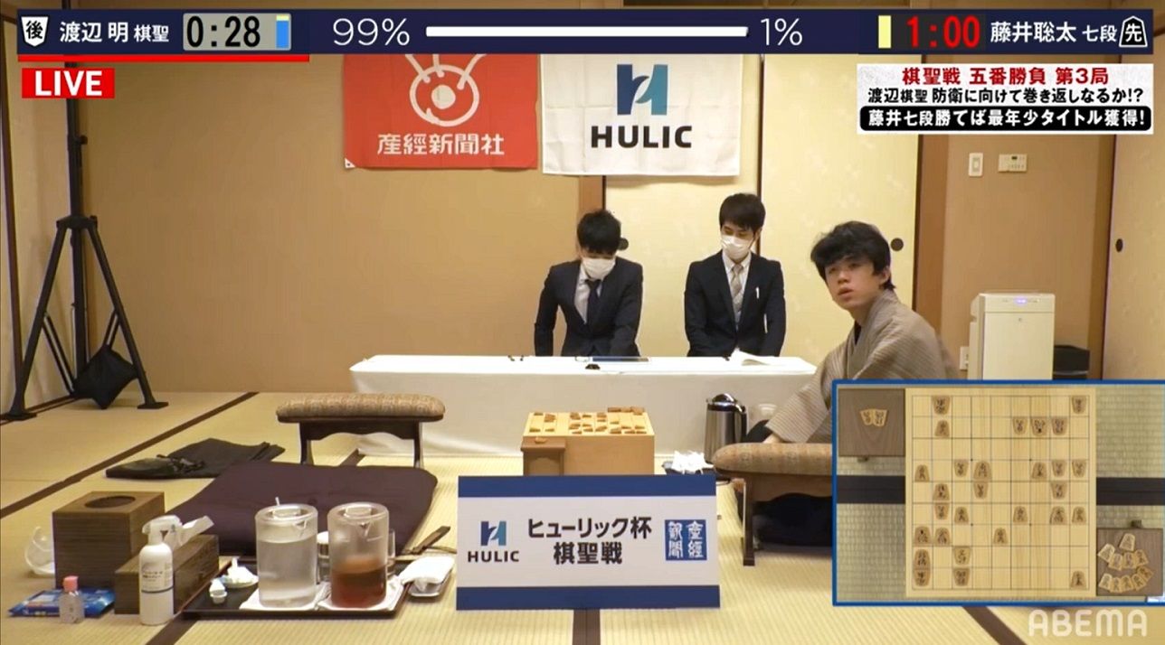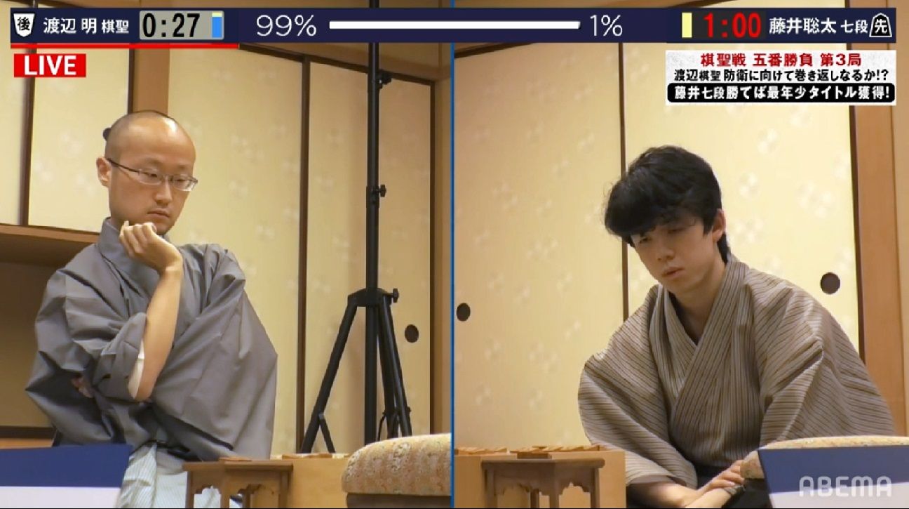 ヒューリック杯棋聖戦五番勝負の第3局が7月9日に行われ、渡辺明棋聖(棋王、王将)が挑戦者の藤井聡太七段に142手で勝利し、今シリーズ初勝利を挙げた。藤井七段は勝てば3連勝で、史上最年少でのタイトル獲得となったが、タイトル25期を誇るトップ棋士の底力に跳ね返される格好となった。