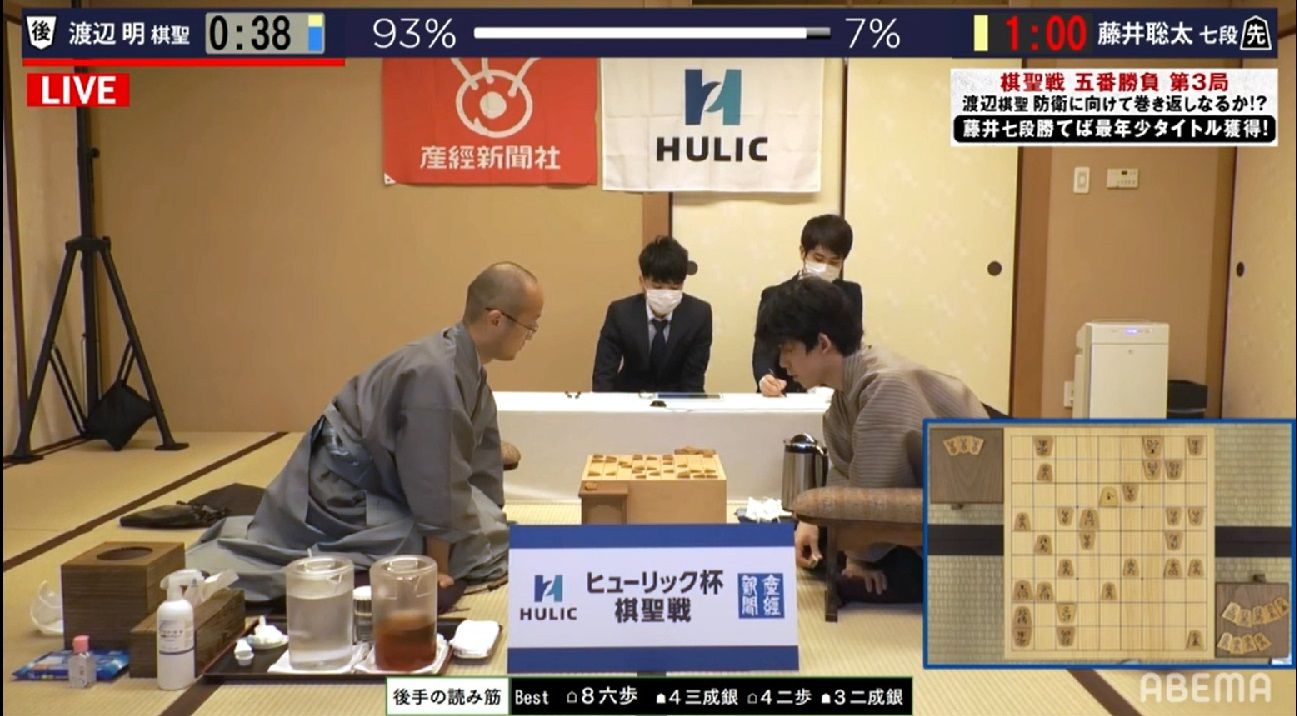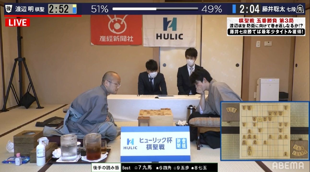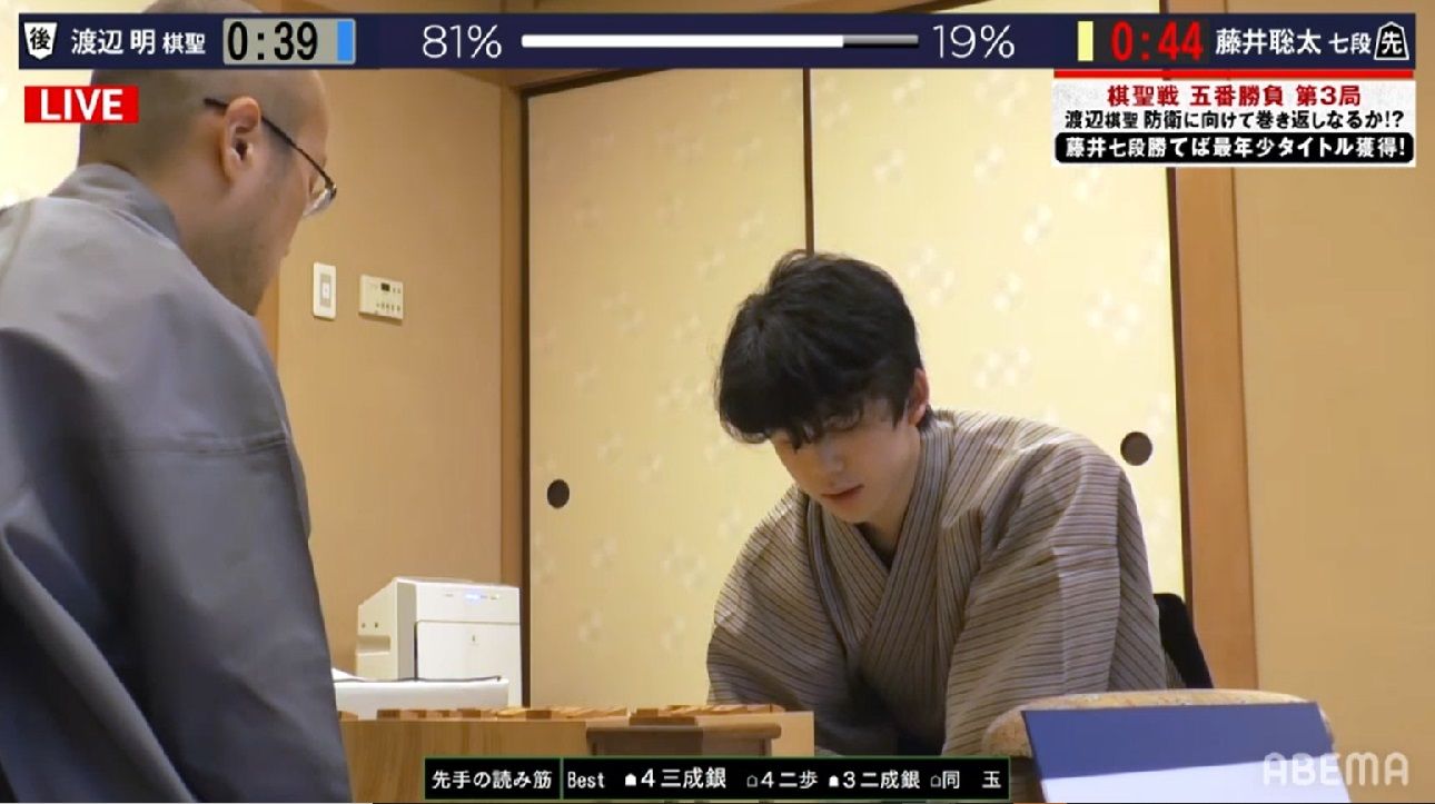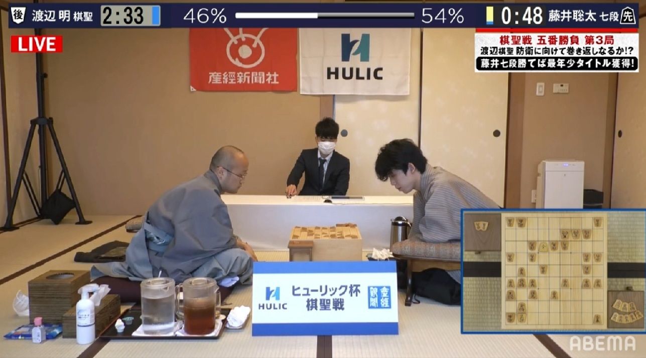 ヒューリック杯棋聖戦五番勝負の第3局が7月9日に行われ、渡辺明棋聖(棋王、王将)が挑戦者の藤井聡太七段に142手で勝利し、今シリーズ初勝利を挙げた。藤井七段は勝てば3連勝で、史上最年少でのタイトル獲得となったが、タイトル25期を誇るトップ棋士の底力に跳ね返される格好となった。