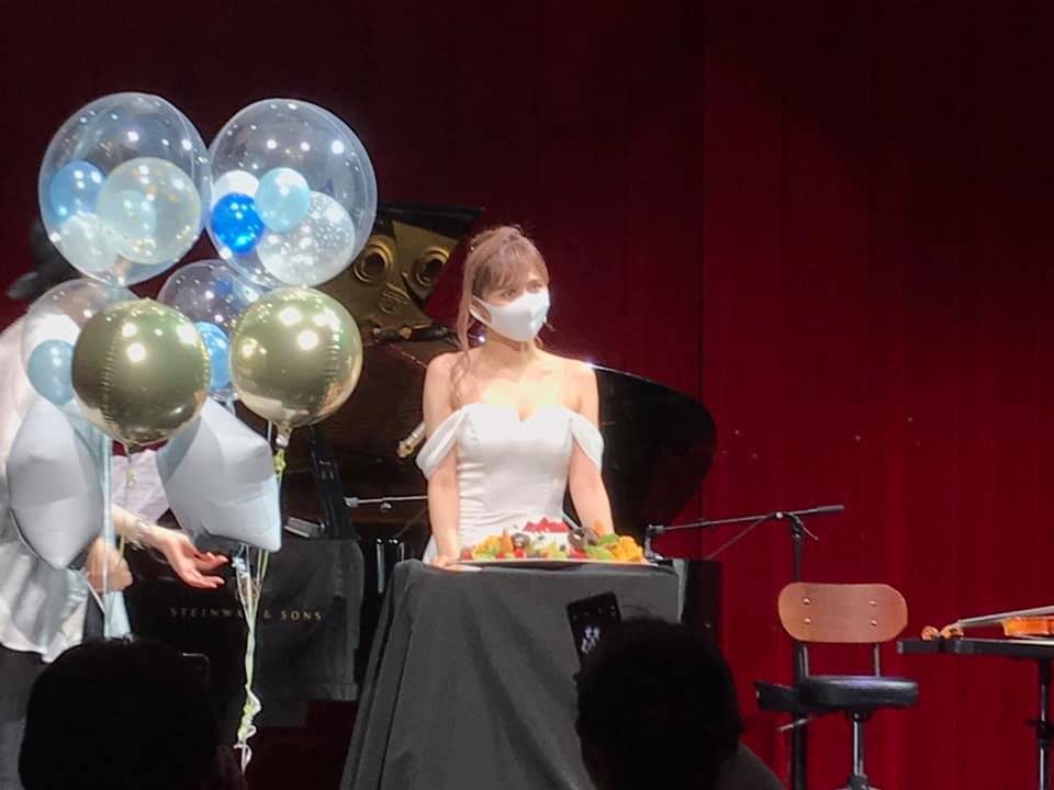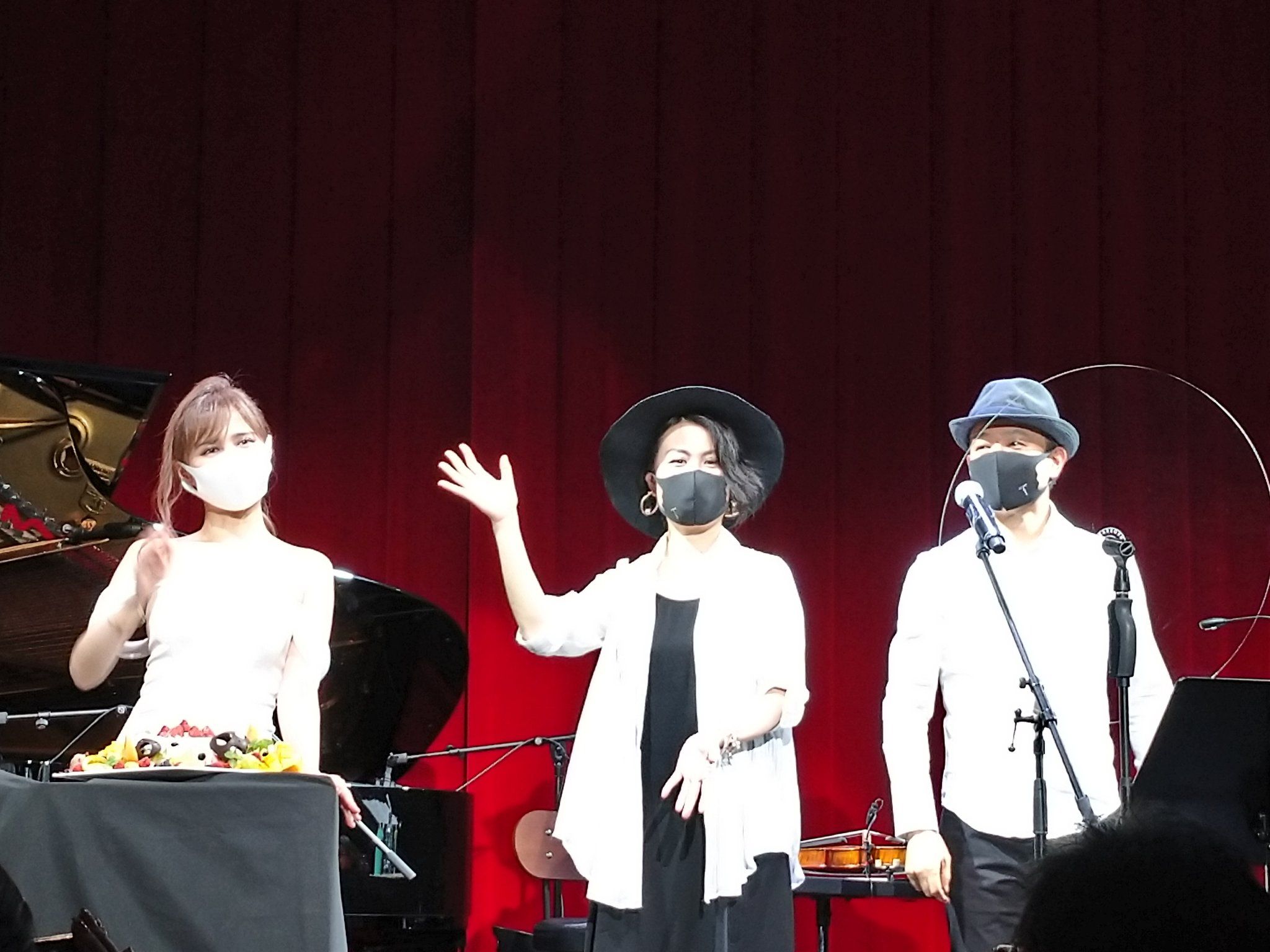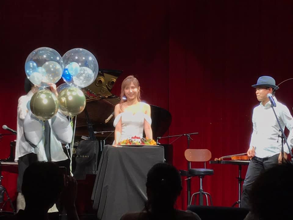 大事な横浜のお友達への想いを籠めた歌やハマに因んだ、ご当地ソングも披露。明日10/8がサラちゃんのお誕生日ということで、お祝いのケーキも。お誕生日ケーキとサラちゃんの記念撮影は写真OKでパチパチと皆様撮影。笑