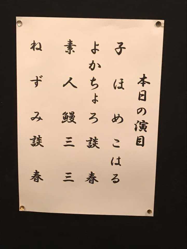 三三さんの演目は「素人鰻(士族のうなぎ)」。​ 八代目三笑亭可楽 ​や古今亭志ん生や五代目柳家小さん系統の落語家が演じるネタで​ 三三さんもその系統 ​。昭和の大名人、​ 八代目桂文楽の至芸 ​でも有名。多分、ラジオで志ん生か小さんの名演を聞いたような気もするが、やはり目の前で鰻に翻弄される所作を観れて至福の時。