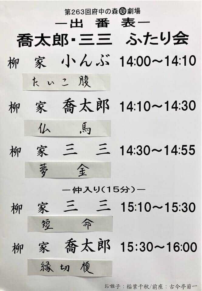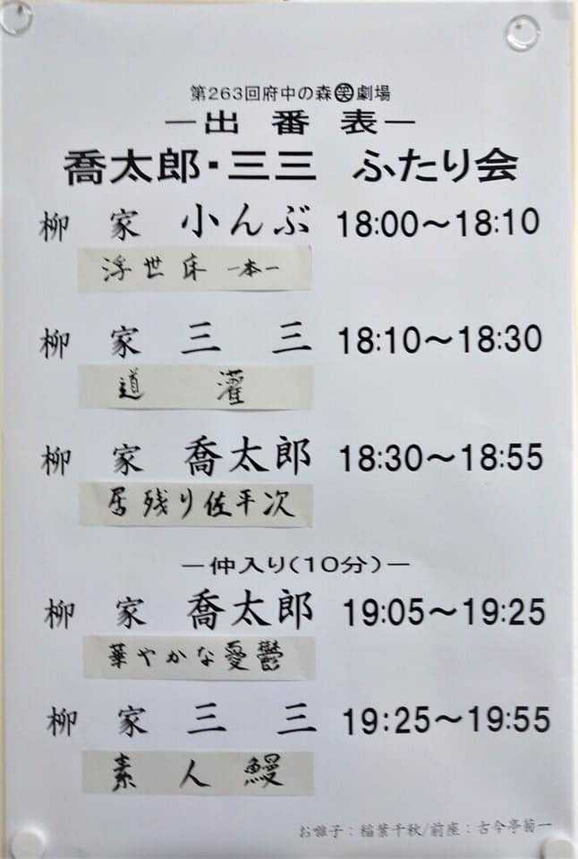 ​<< 2021年3月6日 第263回府中の森笑劇場 喬太郎・三三 ふたり会@府中の森芸術劇場ふるさとホール>>