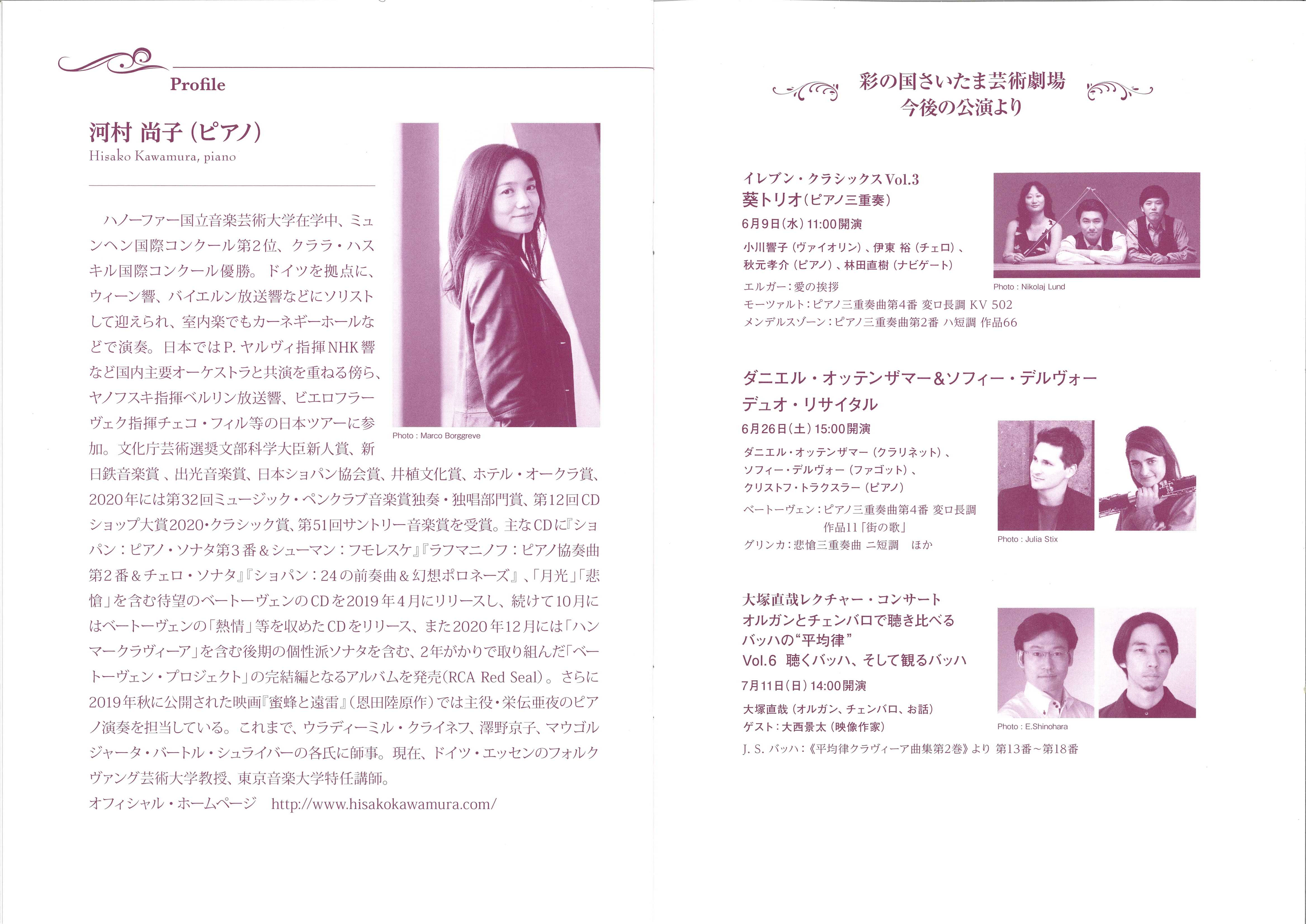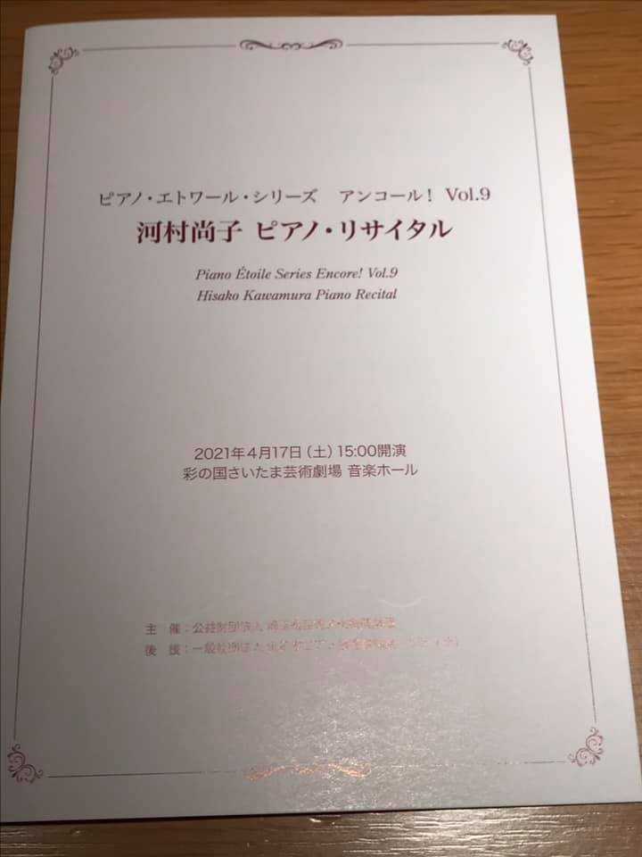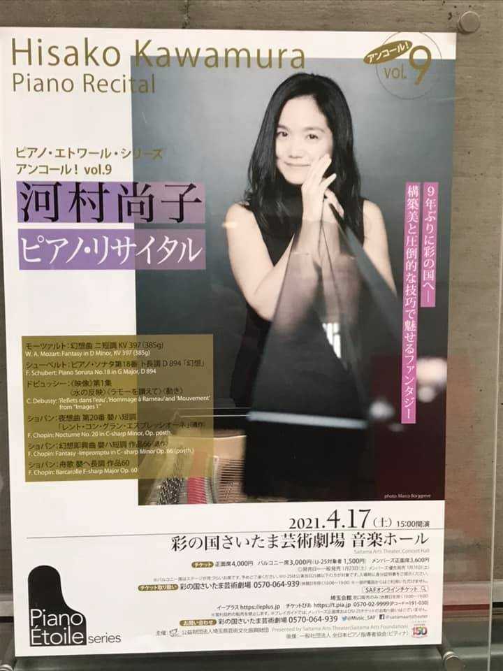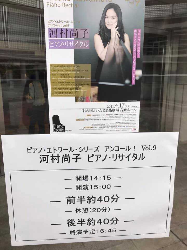 ​<<2021 Apr 17th 「ピアノ・エトワール・シリーズ アンコール! Vol.9 #河村尚子 ピアノ・リサイタル」@彩の国さいたま芸術劇場>>